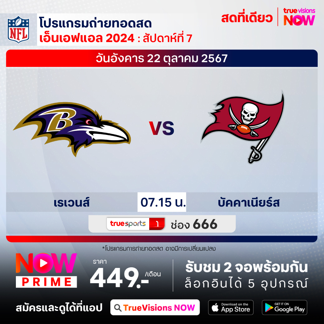 วันอังคาร 22 ต.ค. Ravens Vs Buccaneers เวลา 07.15 ทางช่อง TS 1 (666)