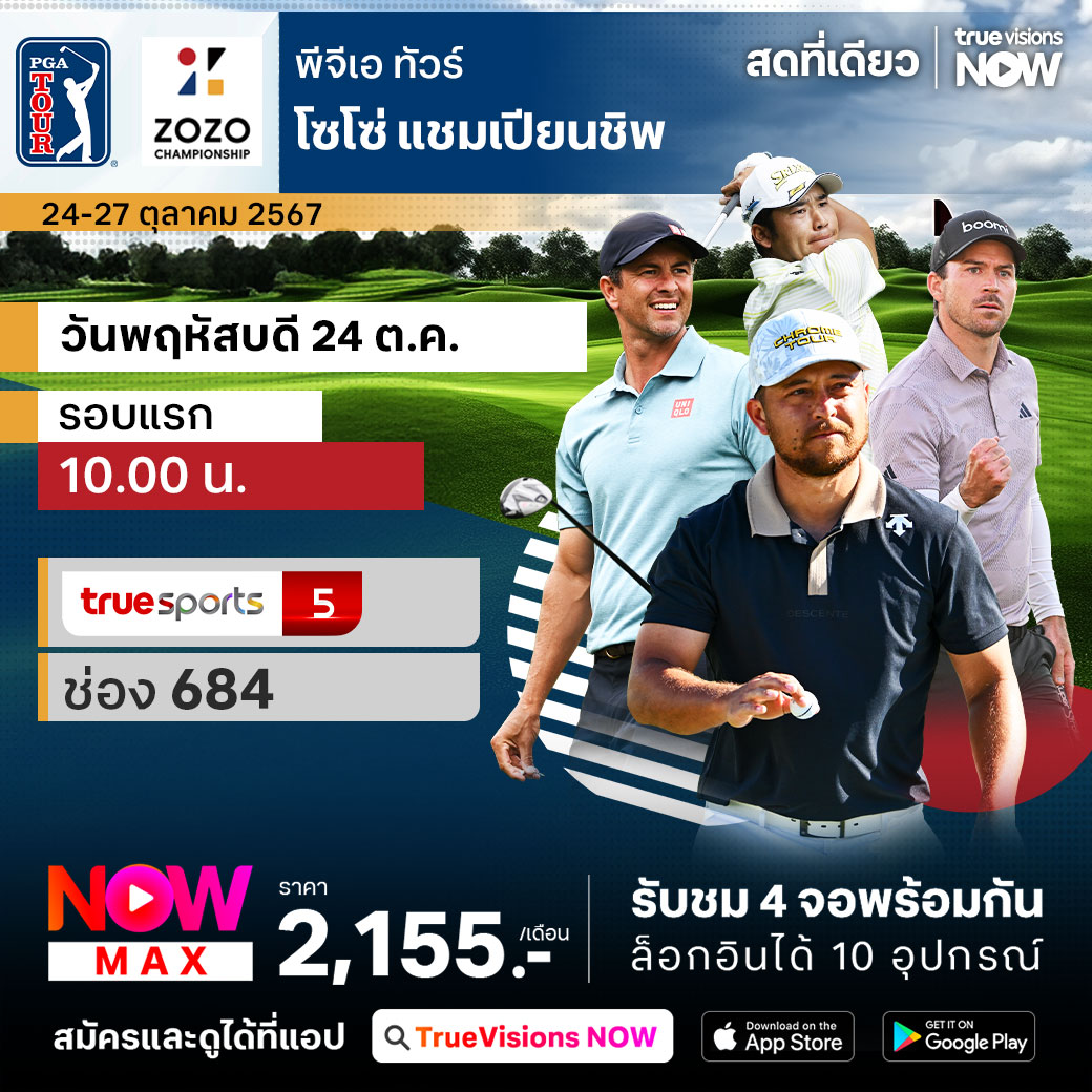 กอล์ฟ พีจีเอ ทัวร์ สัปดาห์นี้พบกับรายการ โซโซ่ แชมเปี้ยนชิพ 2024 ที่สนามแอ็คคอร์เดีย กอล์ฟ เมืองชิบะ ประเทศญี่ปุ่น ร่วมลุ้นกันว่าใครจะทำผลงานได้ที่สุด เพื่อคว้าโทรฟี่และตำแหน่งแชมป์ที่มีเพียงหนึ่งเดียว ชมสด เอ็กซ์คลูซีฟ ครบทุกรอบ ที่เดียวที่ ทรูวิชั่นส์