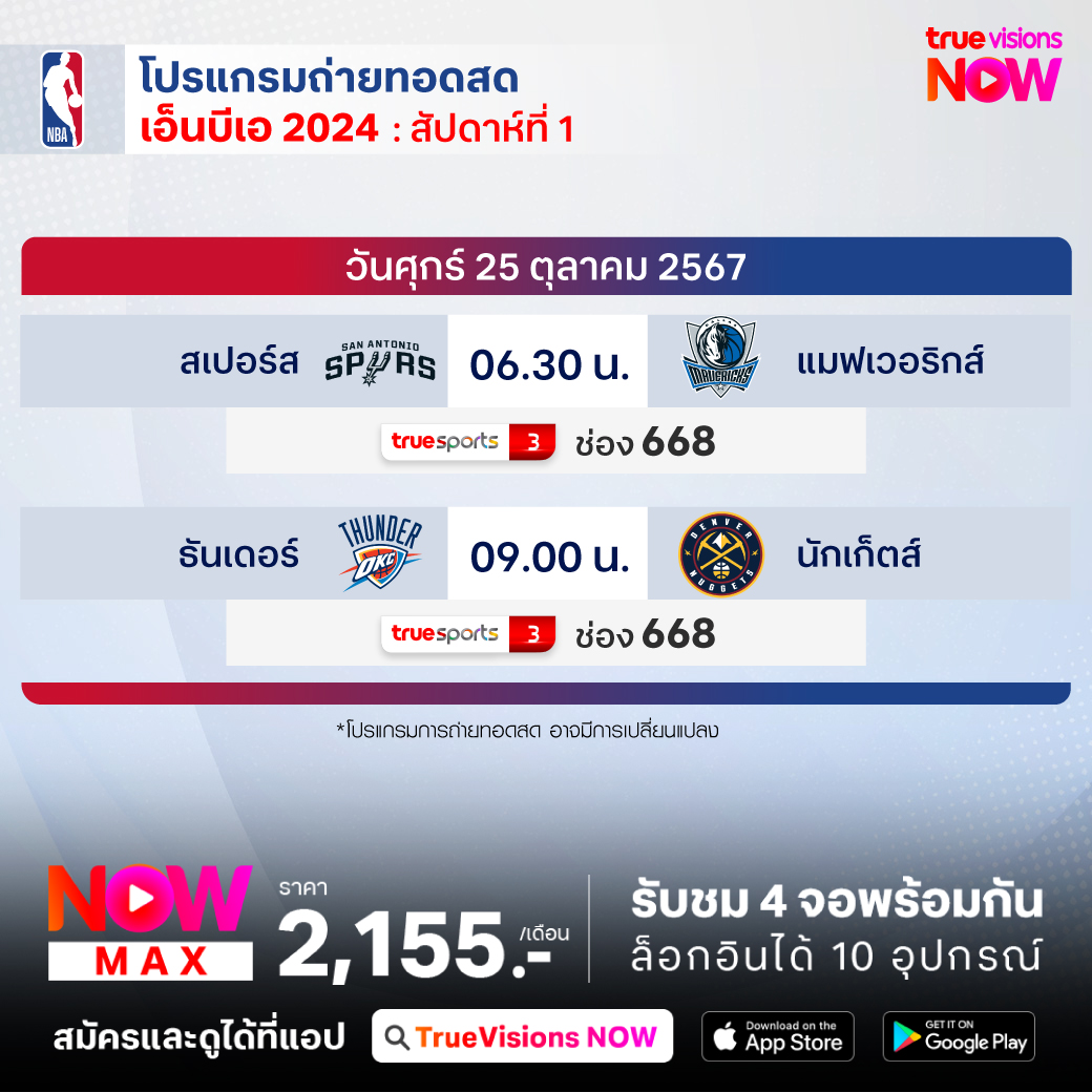 วันศุกร์ 25 ต.ค. Thunder Vs Nuggets เวลา 09.00 ทางช่อง TS 3 (668)