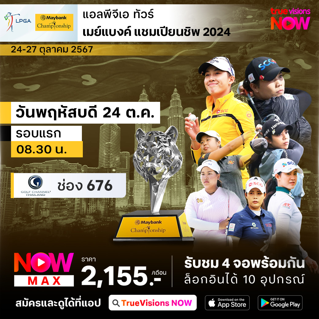 กอล์ฟหญิง แอลพีจีเอ ทัวร์ ช่วงเอเชียนสวิง สัปดาห์ที่ 3 สัปดาห์นี้ไปกันที่ประเทศมาเลเซีย กับรายการ เมย์แบงค์ แชมเปี้ยนชิพ 2024 ดวลกันที่สนาม กัวลาลัมเปอร์ กอล์ฟ แอนด์ คันทรี่ คลับ กรุงกัวลาลัมเปอร์ ร่วมเชียร์โปรสาวไทยลุ้นแชมป์กับโปรแถวหน้าของโลก ชมสด ครบทุกรอบ ที่เดียวที่ ทรูวิชั่นส์
