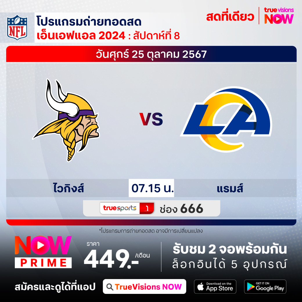 วันศุกร์ 25 ต.ค. Vikings Vs Rams เวลา 07.15 ทางช่อง TS 1 (666)