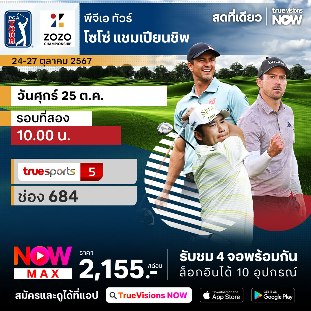 กอล์ฟ พีจีเอ ทัวร์ สัปดาห์นี้พบกับรายการ โซโซ่ แชมเปี้ยนชิพ 2024 ที่สนามแอ็คคอร์เดีย กอล์ฟ เมืองชิบะ ประเทศญี่ปุ่น ร่วมลุ้นกันว่าใครจะทำผลงานได้ที่สุด เพื่อคว้าโทรฟี่และตำแหน่งแชมป์ที่มีเพียงหนึ่งเดียว ชมสด เอ็กซ์คลูซีฟ ครบทุกรอบ ที่เดียวที่ ทรูวิชั่นส์