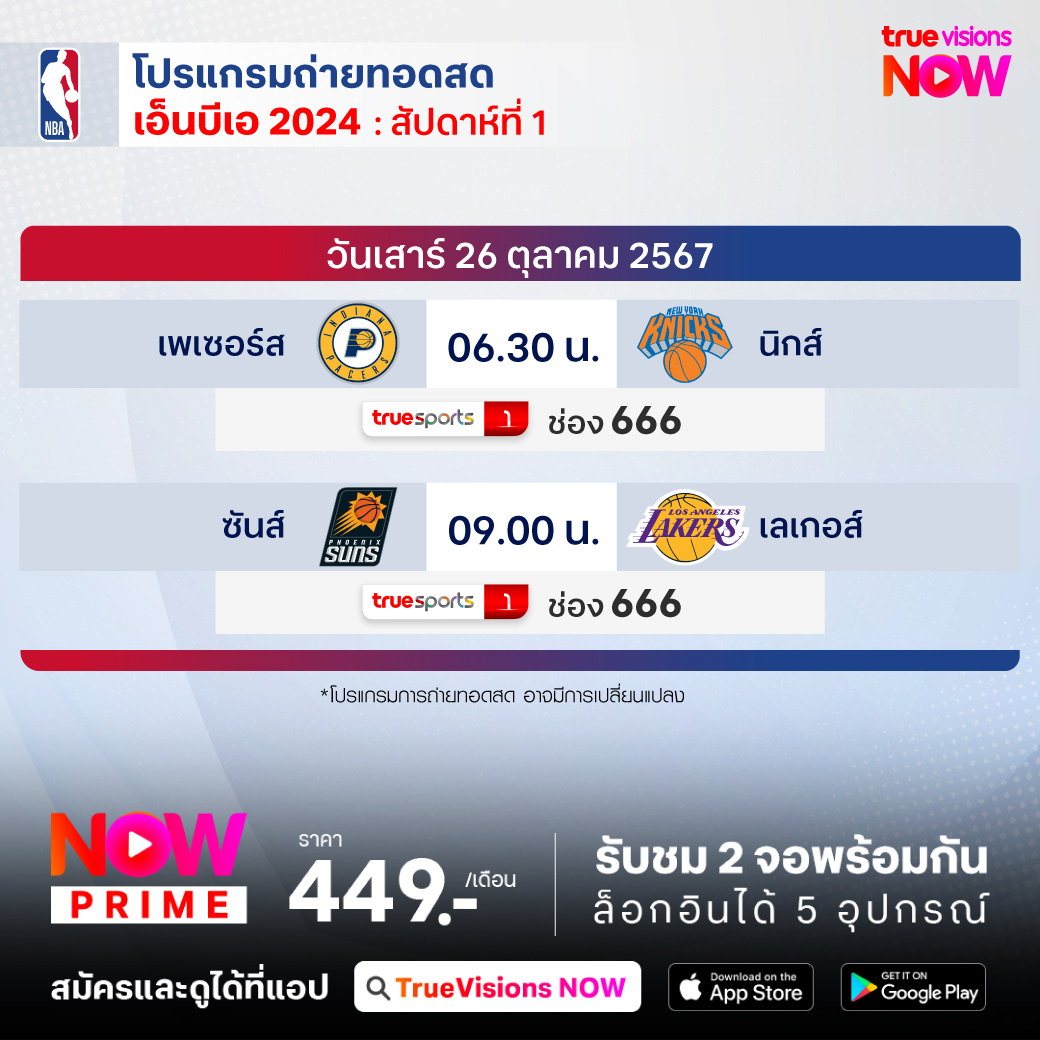 วันเสาร์ 26 ต.ค. Suns Vs Lakers เวลา 09.00 ทางช่อง TS 1 (666)