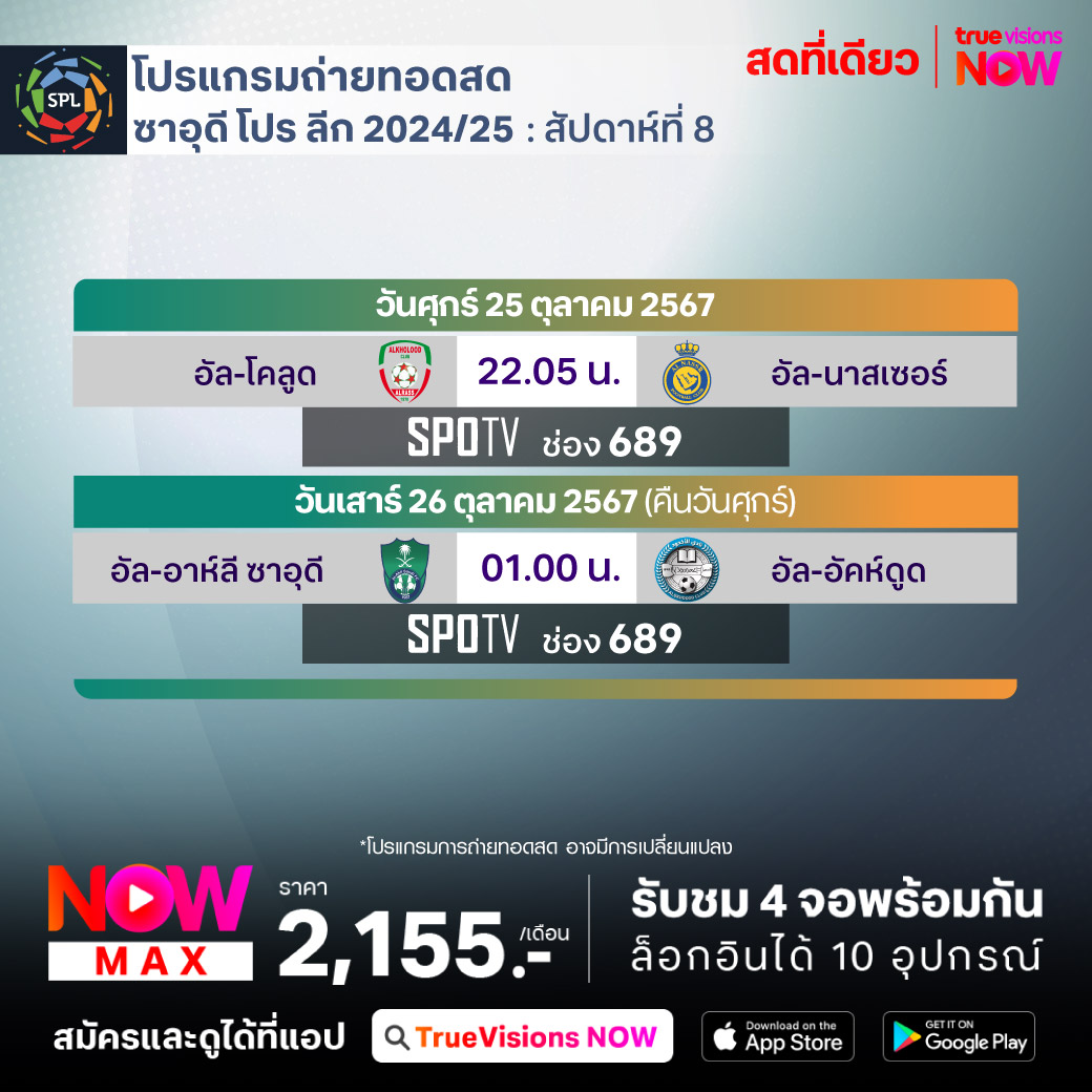Al-Kholood vs Al-Nassr เวลา 22.05-00.05 ทางช่อง SPOTV (689)