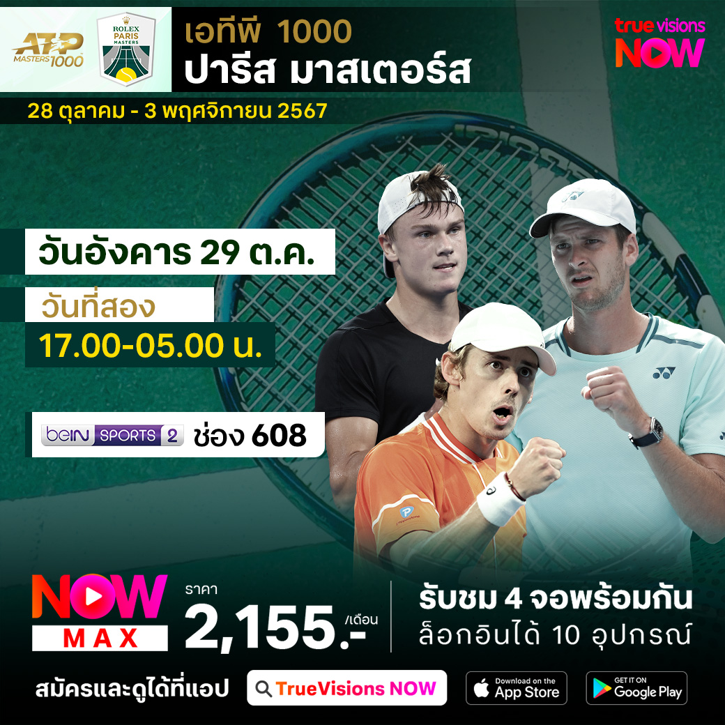 เทนนิส เอทีพี ทัวร์ สัปดาห์นี้ พบกับรายการระดับ เอทีพี 1000 รายการสุดท้ายของปี ปารีส มาสเตอร์ส ที่กรุงปารีส ประเทศฝรั่งเศส รวมนักเทนนิสระดับโลกเข้าแข่งขันกันอย่างครบครัน ทั้ง โนวัค ยอโควิช, คาร์ลอส อัลการาซ, ยานนิค ซินเนอร์ และนักเทนนิสระดับโลกอีกหลายคน ร่วมลุ้นกันว่าใครจะคว้าแชมป์เทนนิสรายการใหญ่ ระดับมาสเตอร์ 1000 รายการสุดท้ายของปีไปครอง ชมสด ครบทุกรอบ ที่ ทรูวิชั่นส์