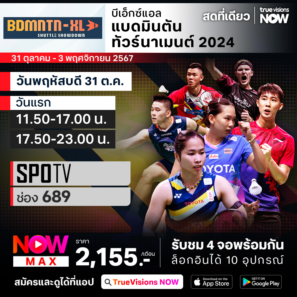 ครั้งแรกของการแข่งขันแบดมินตันประเภททีมรายการพิเศษ บีเอ็กซ์แอล แบดมินตัน ทัวร์นาเม้นต์ 2024 แฟนๆ ต้องไม่พลาด เมื่อซูเปอร์สตาร์ของโลก มารวมตัวกันอย่างคับคั่ง นำโดย วิคเตอร์ แอคเซลเซ่น ร่วมด้วย มือท็อปจากไทย “วิว” กุลวุฒิ วิทิตศานต์, “เมย์” รัชนก อินทนนท์ และ “หมิว” พรปวีณ์ ช่อชูวงศ์ ชมสด เอ็กซ์คลูซีฟ ทุกรอบการแข่งขัน ที่เดียวที่ ทรูวิชั่นส์