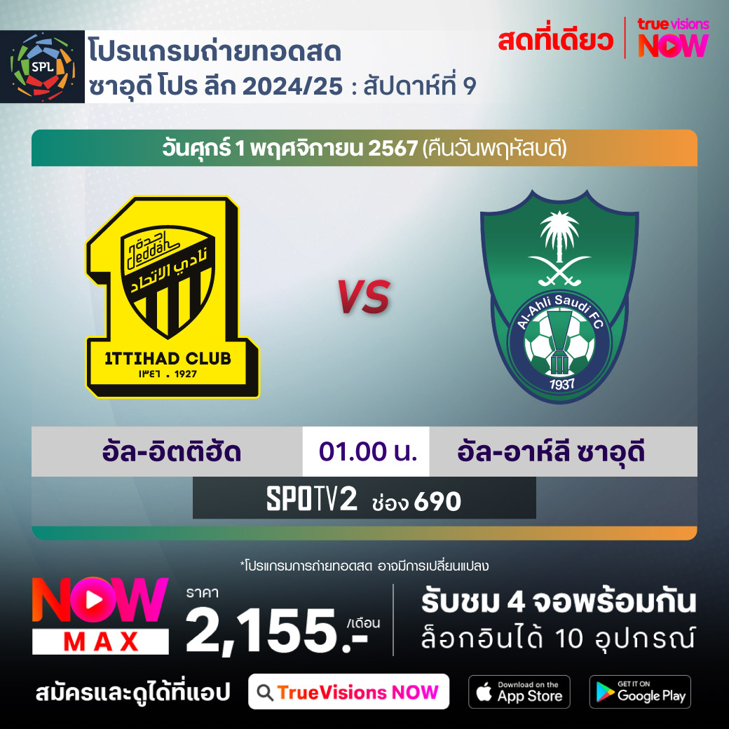 Al-Ittihad vs Al-Ahli Saudi เวลา 01.00-03.00 ทางช่อง SPOTV2 (690)