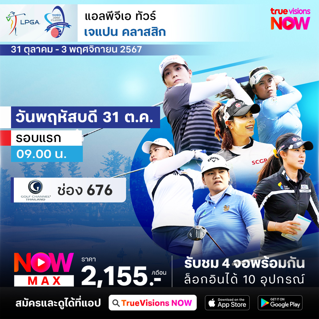 กอล์ฟหญิง แอลพีจีเอ ทัวร์ สัปดาห์นี้พบกับรายการที่มาอย่างยาวนานที่ญี่ปุ่น ในศึก โตโต้ แจแปน คลาสสิก 2024 สั่งลาช่วงเอเชี่ยนสวิงสัปดาห์สุดท้าย ก่อนที่จะไปลุยกันต่อให้จบในฤดูกาลนี้ที่สหรัฐอเมริกา ร่วมเชียร์โปรสาวไทยลุ้นแชมป์รายการนี้เป็นครั้งแรกร่วมกับโปรชั้นนำของโลก ชมสด ครบทุกรอบ ที่ทรูวิชั่นส์