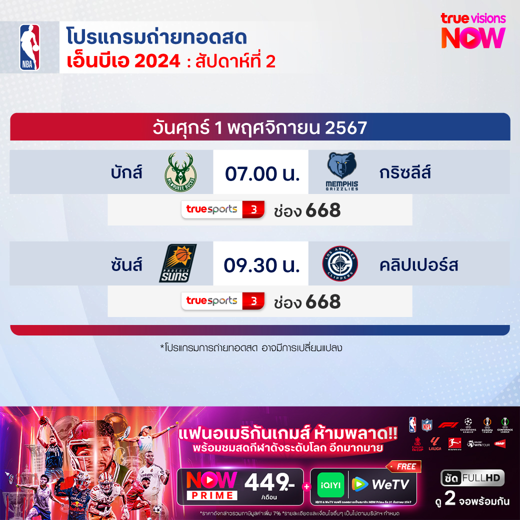วันศุกร์ 1 พ.ย. Suns Vs Clippers เวลา 09.30 ทางช่อง TS 3 (668)