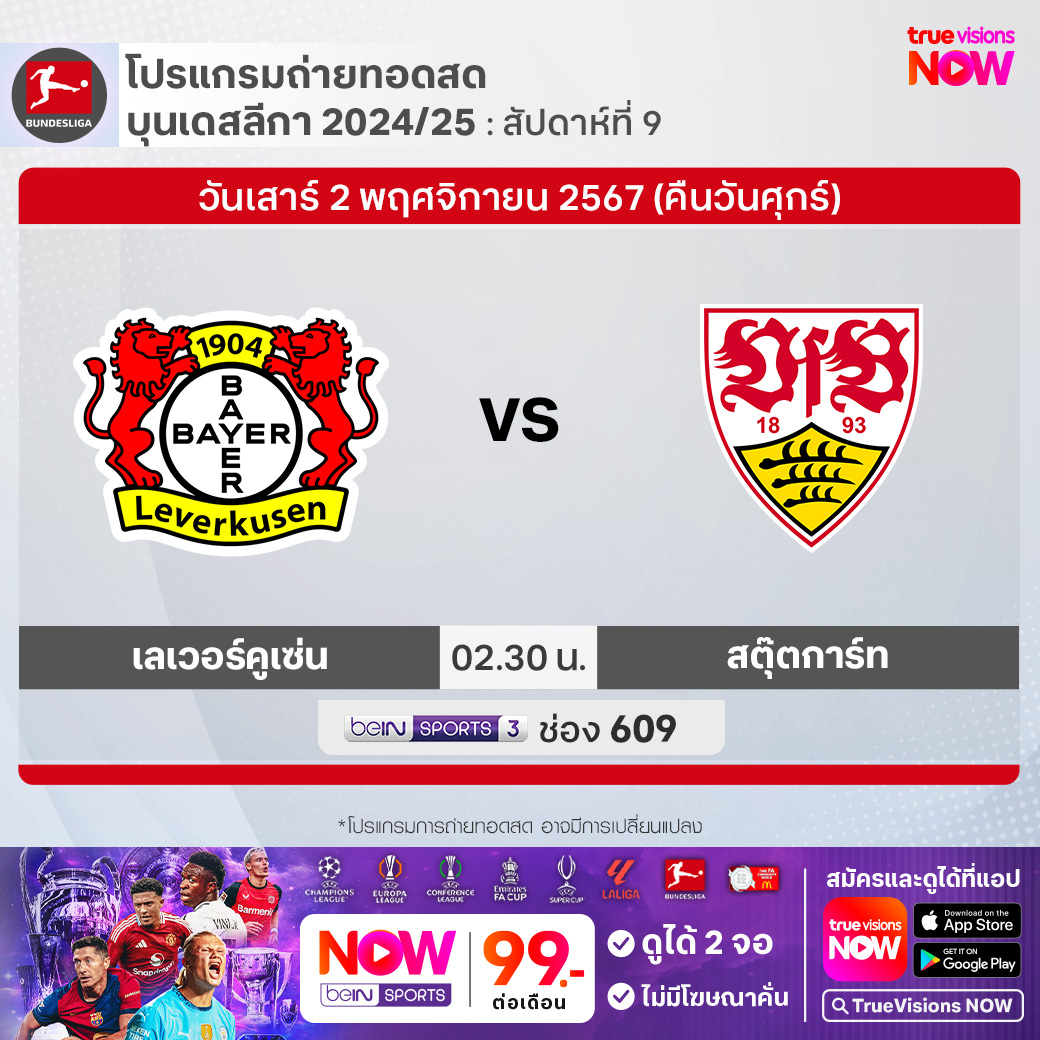 Leverkusen vs Stuttgart เวลา 02.30-04.30 ทางช่อง beIN 3 (609)