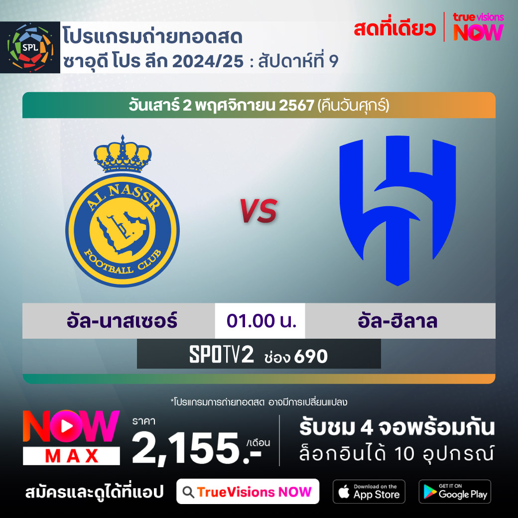 Al-Nassr vs Al-Hilal เวลา 01.00-03.00 ทางช่อง SPOTV2 (690)