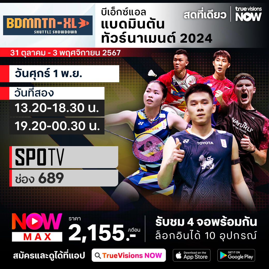 ครั้งแรกของการแข่งขันแบดมินตันประเภททีมรายการพิเศษ บีเอ็กซ์แอล แบดมินตัน ทัวร์นาเม้นต์ 2024 แฟนๆ ต้องไม่พลาด เมื่อซูเปอร์สตาร์ของโลก มารวมตัวกันอย่างคับคั่ง นำโดย วิคเตอร์ แอคเซลเซ่น ร่วมด้วย มือท็อปจากไทย “วิว” กุลวุฒิ วิทิตศานต์, “เมย์” รัชนก อินทนนท์ และ “หมิว” พรปวีณ์ ช่อชูวงศ์ ชมสด เอ็กซ์คลูซีฟ ทุกรอบการแข่งขัน ที่เดียวที่ ทรูวิชั่นส์