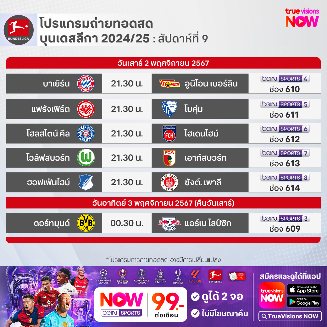Bayern vs FC Union เวลา 21.30-23.30 ทางช่อง beIN 4 (610)