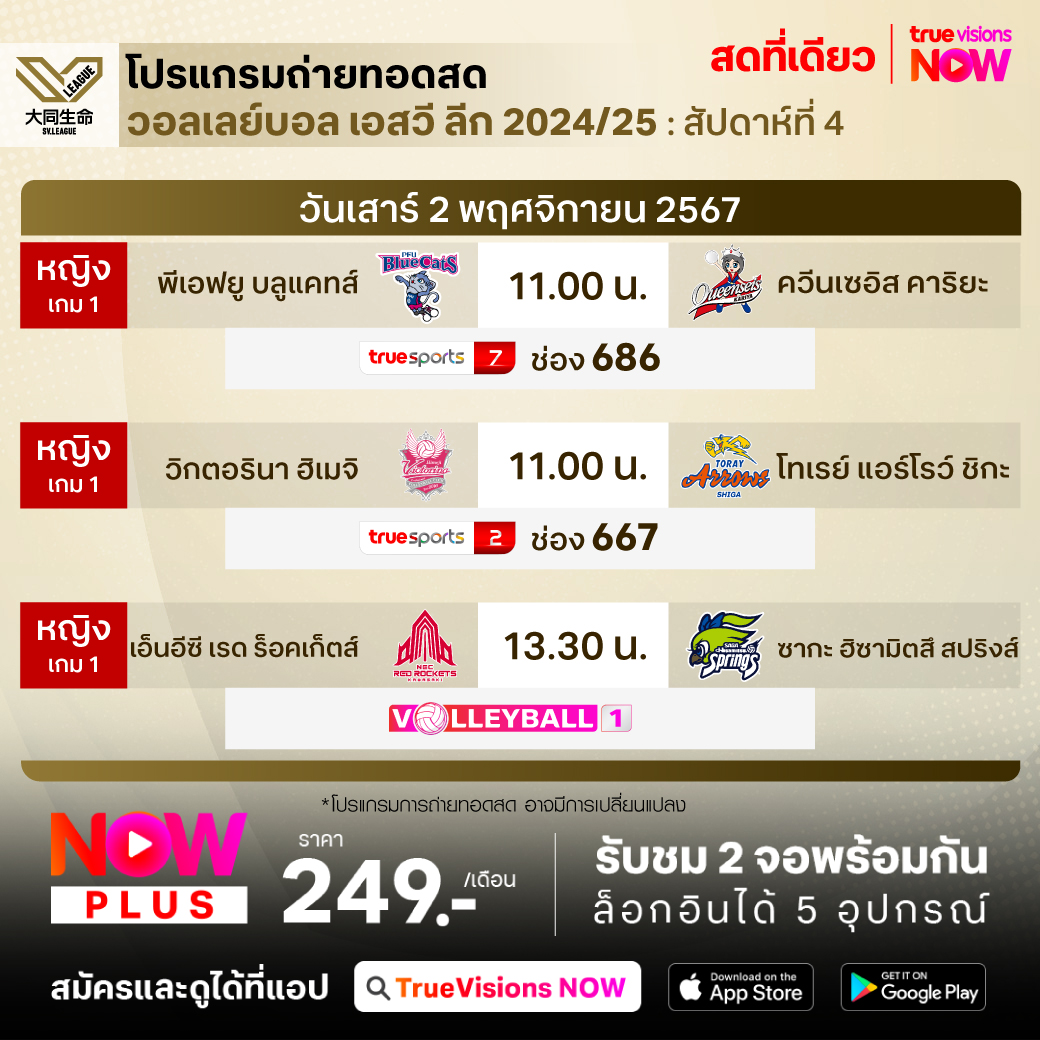 พีเอฟยู บลูแคทส์ พบ ควีนเซอิส คาริยะ เวลา 11.00 - 13.30 ทางช่อง TS 7 (686)
