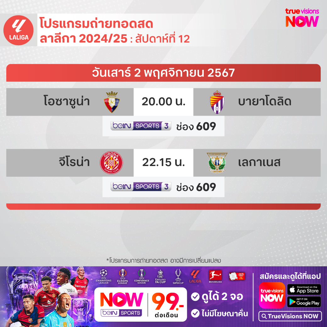 Girona vs Leganes เวลา 22.15-00.15 ทางช่อง beIN 3 (609)