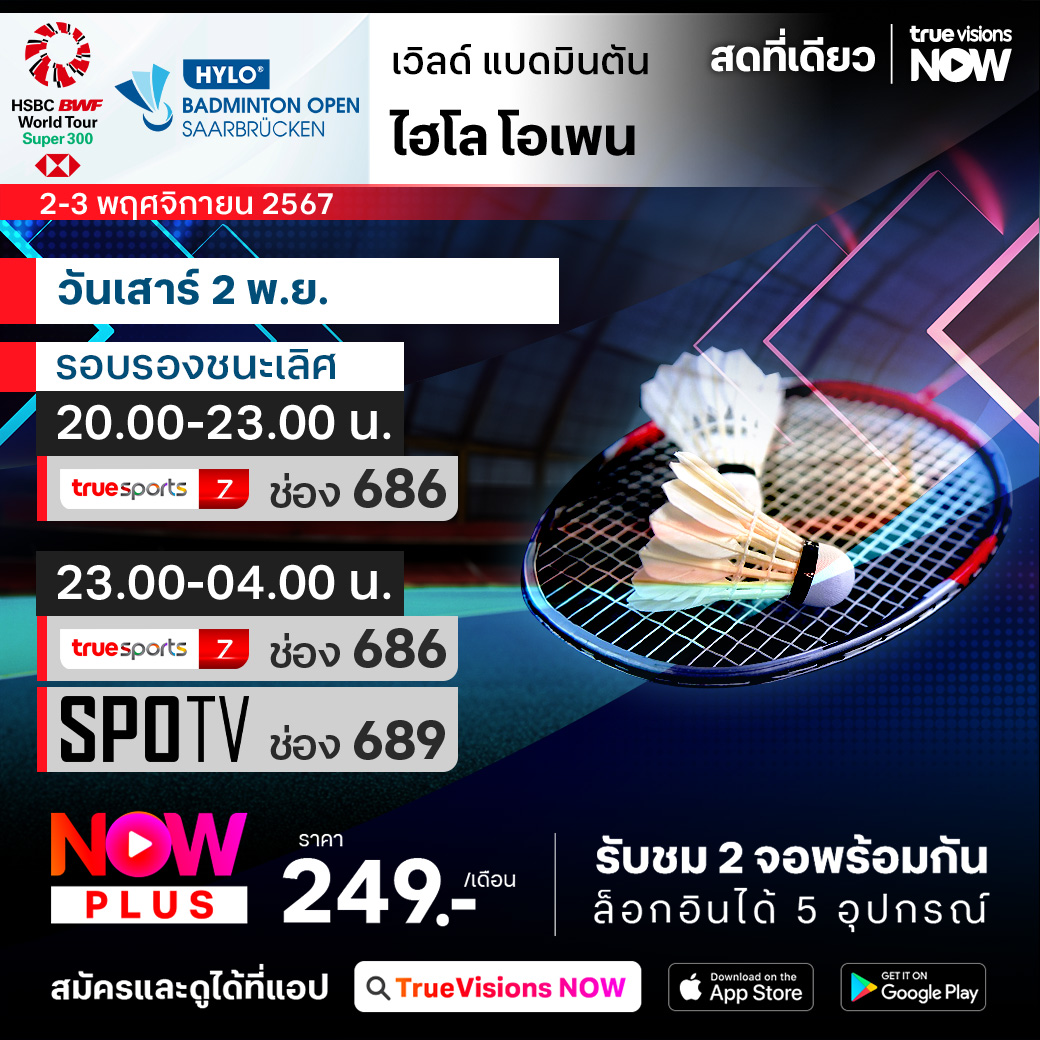 เวิลด์ แบดมินตัน เก็บคะแนนสะสมโลก ยังคงเดินหน้าล่าแชมป์กันต่อเนื่อง สัปดาห์นี้เป็นสัปดาห์สุดท้ายที่แข่งขันในทวีปยุโรป ก่อนจะมาจบฤดูกาลในทวีปเอเชีย กับรายการ ไฮโล โอเพ่น 2024 รายการระดับ เวิลด์ ทัวร์ ซูเปอร์ 300 ที่เมืองซาร์บรุ๊คเค่น ใครจะคว้าแชมป์รายการนี้ไปครอง ชมสด เอ็กซ์คลูซีฟ ที่เดียวที่ ทรูวิชั่นส์