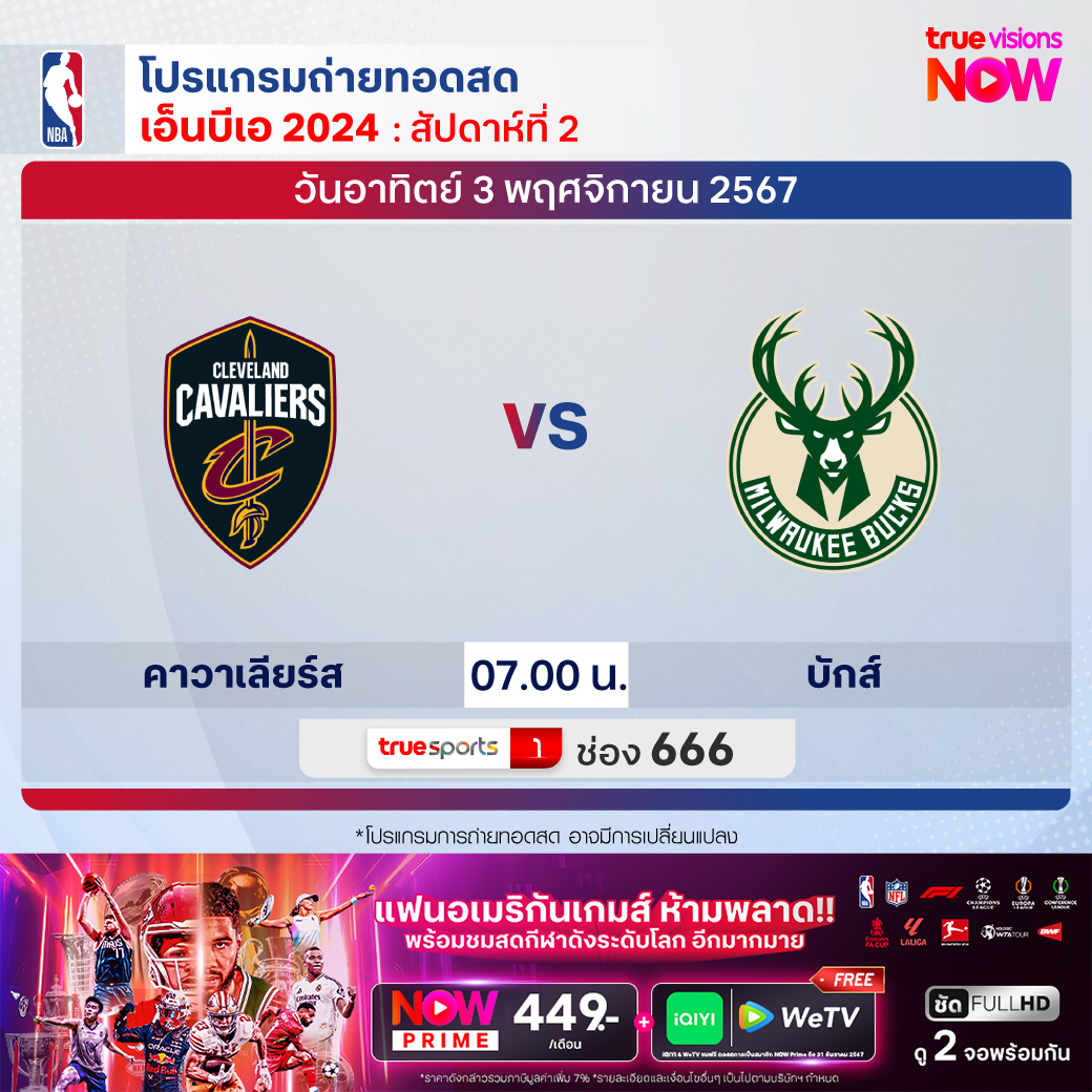 วันอาทิตย์ 3 พ.ย. Cavaliers Vs Bucks เวลา 07.00 ทางช่อง TS 1 (666)