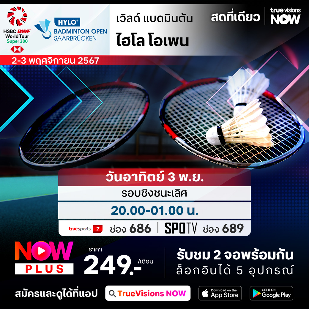 เวิลด์ แบดมินตัน เก็บคะแนนสะสมโลก ยังคงเดินหน้าล่าแชมป์กันต่อเนื่อง สัปดาห์นี้เป็นสัปดาห์สุดท้ายที่แข่งขันในทวีปยุโรป ก่อนจะมาจบฤดูกาลในทวีปเอเชีย กับรายการ ไฮโล โอเพ่น 2024 รายการระดับ เวิลด์ ทัวร์ ซูเปอร์ 300 ที่เมืองซาร์บรุ๊คเค่น ใครจะคว้าแชมป์รายการนี้ไปครอง ชมสด เอ็กซ์คลูซีฟ ที่เดียวที่ ทรูวิชั่นส์