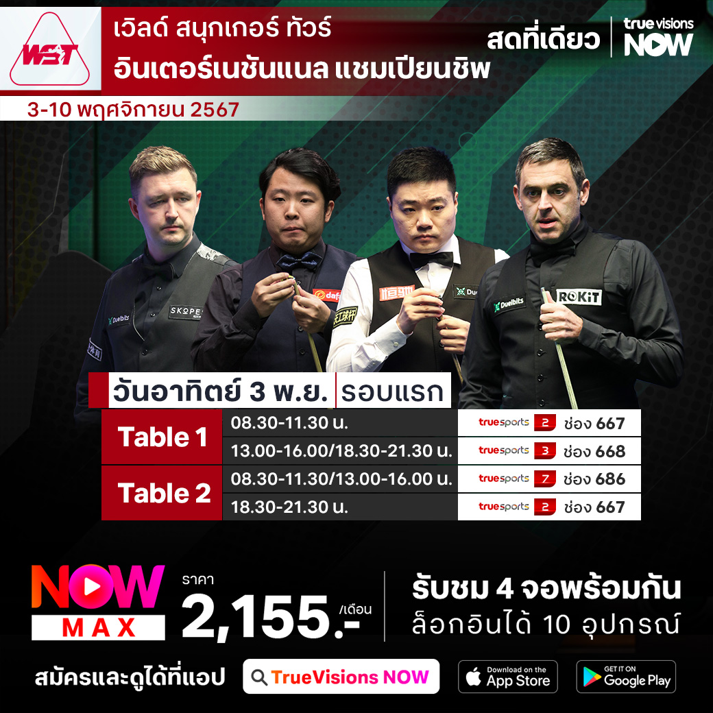 แฟนๆ สนุกเกอร์ พลาดไม่ได้กับรายการเก็บคะแนนสะสมโลก อินเตอร์เนชั่นแนล แชมเปี้ยนชิพ 2024 ที่เมืองหนานจิง ประเทศสาธารณรัฐประชาชนจีน ร่วมลุ้นกันไม้ต่อไม้ เฟรมต่อเฟรม แมตช์ต่อแมตช์ สุดท้ายแล้วใครจะคว้าแชมป์ไปครอง พร้อมกับเงินรางวัลก้อนโต ชมสด เอ็กซ์คลูซีฟ ครบทุกรอบ ที่เดียวที่ ทรูวิชั่นส์