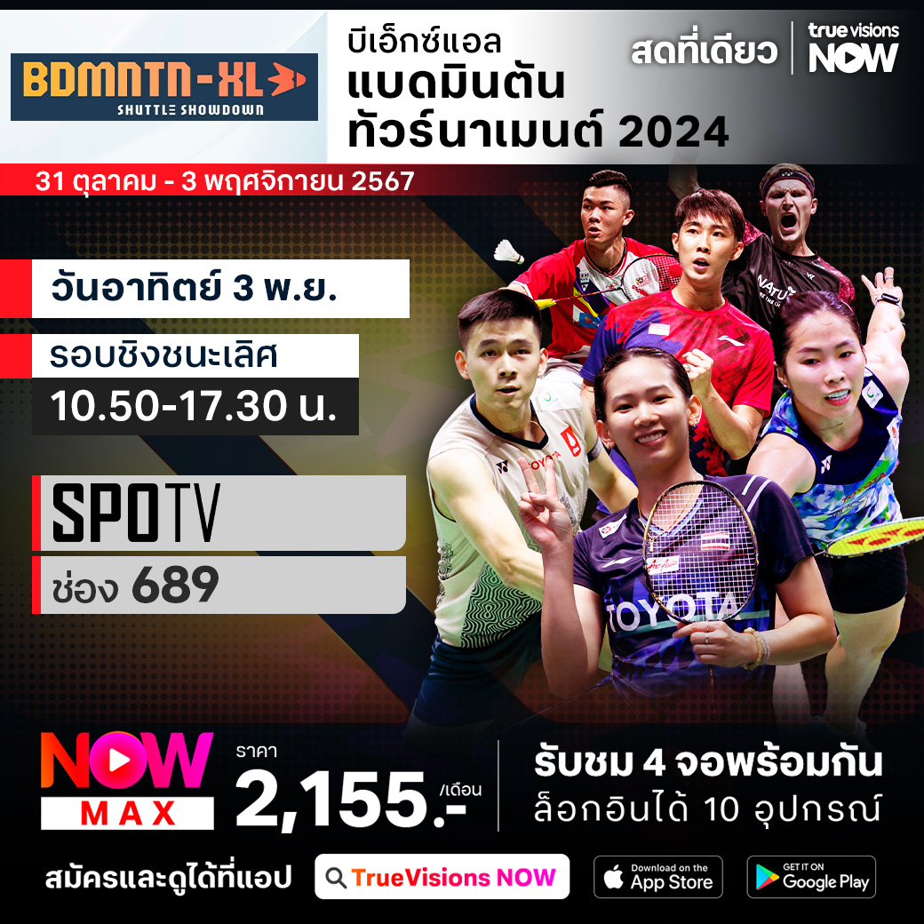 ครั้งแรกของการแข่งขันแบดมินตันประเภททีมรายการพิเศษ บีเอ็กซ์แอล แบดมินตัน ทัวร์นาเม้นต์ 2024 แฟนๆ ต้องไม่พลาด เมื่อซูเปอร์สตาร์ของโลก มารวมตัวกันอย่างคับคั่ง นำโดย วิคเตอร์ แอคเซลเซ่น ร่วมด้วย มือท็อปจากไทย “วิว” กุลวุฒิ วิทิตศานต์, “เมย์” รัชนก อินทนนท์ และ “หมิว” พรปวีณ์ ช่อชูวงศ์ ชมสด เอ็กซ์คลูซีฟ ทุกรอบการแข่งขัน ที่เดียวที่ ทรูวิชั่นส์