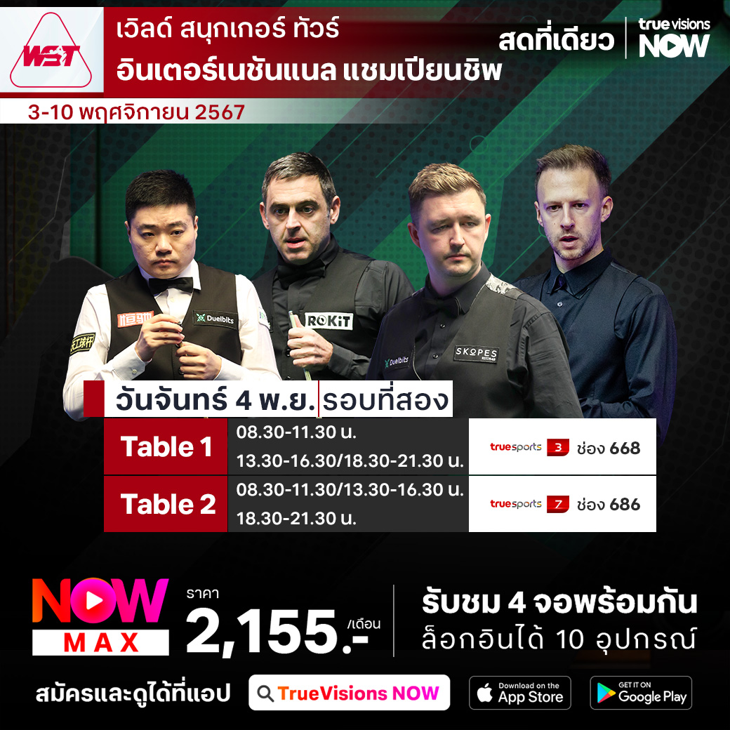 แฟนๆ สนุกเกอร์ พลาดไม่ได้กับรายการเก็บคะแนนสะสมโลก อินเตอร์เนชั่นแนล แชมเปี้ยนชิพ 2024 ที่เมืองหนานจิง ประเทศสาธารณรัฐประชาชนจีน ร่วมลุ้นกันไม้ต่อไม้ เฟรมต่อเฟรม แมตช์ต่อแมตช์ สุดท้ายแล้วใครจะคว้าแชมป์ไปครอง พร้อมกับเงินรางวัลก้อนโต ชมสด เอ็กซ์คลูซีฟ ครบทุกรอบ ที่เดียวที่ ทรูวิชั่นส์