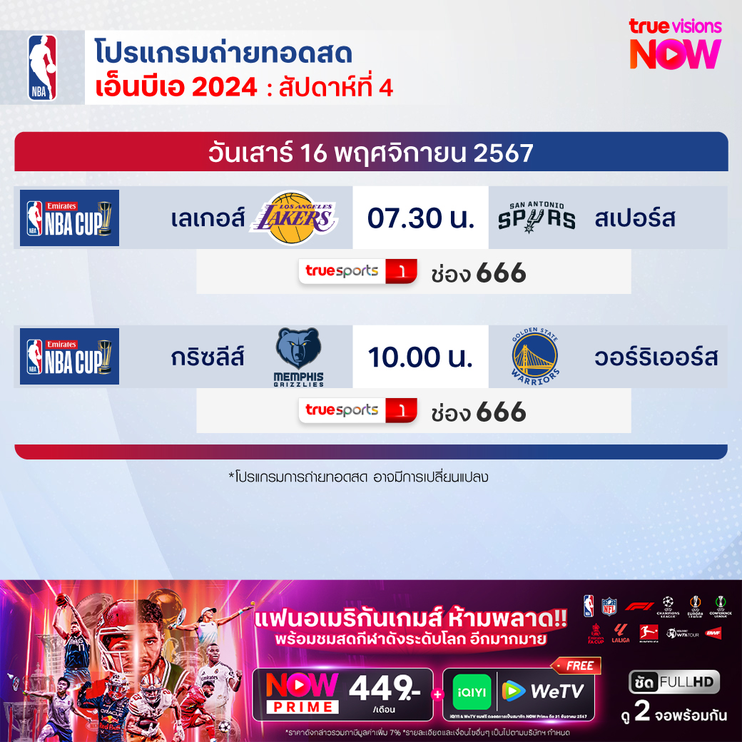 Grizzlies Warriors เวลา 10.00 ทางช่อง TS 1 (666)
