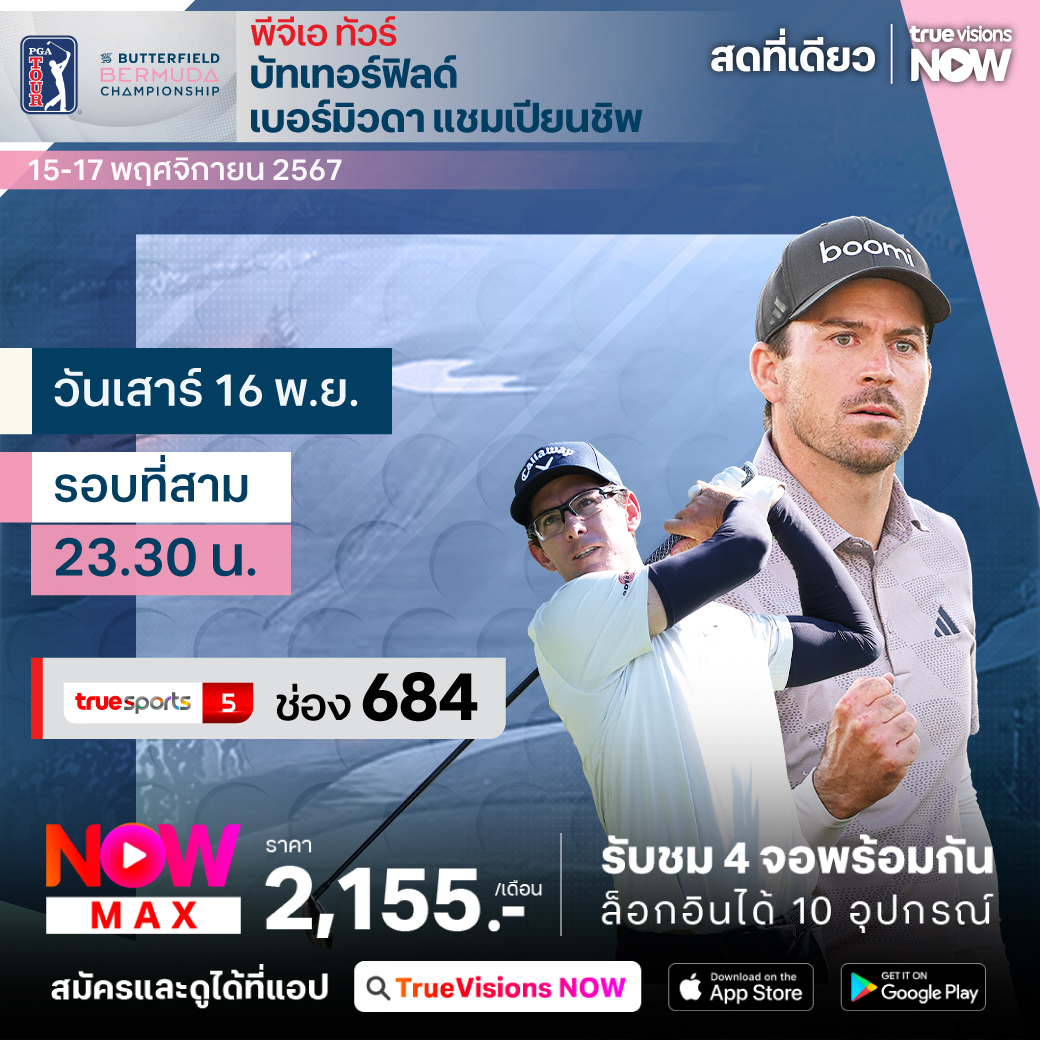กอล์ฟ พีจีเอ ทัวร์ รายการ บัทเทอร์ฟิลด์ เบอร์มิวด้า แชมเปี้ยนชิพ ที่สนามอันท้าทายและสวยงามอย่าง พอร์ท รอยัล กอล์ฟ คอร์ส ในเซาธ์แฮมป์ตัน เบอร์มิวด้า ชิงเงินรางวัลรวม 6,900,000 เหรียญสหรัฐฯ ร่วมลุ้นกันว่าใครจะคว้าแชมป์ปีนี้ไปครอง ชมสดจุใจ ครบทุกรอบ เอ็กซ์คลูซีฟ ที่เดียวที่ ทรูวิชั่นส์