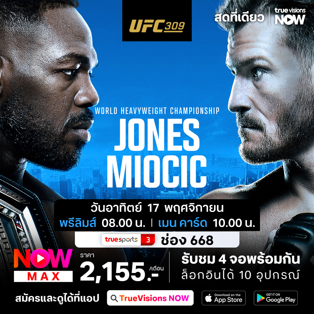 ศึกยูเอฟซี 309 มหาศึกที่แฟนๆ กีฬาต่อสู้เฝ้ารอคอย คู่เอก สุดยอดนักสู้ผู้ยิ่งใหญ่ตัวจริงเสียงจริง จอน โจนส์ ป้องกันตำแหน่ง รุ่นเฮฟวี่เวต กับคู่ปรับระดับพระกาฬที่เป็นอดีตแชมป์ สติเป้ มิโอซิช ร่วมด้วยความมันส์จากรุ่นไลต์เวต ชาร์ลส์ โอลิเวียว่า อดีตแชมป์จากบราซิล พบนักสู้ชาวอเมริกัน ไมเคิ่ล แชนด์เลอร์ จากสังเวียน เมดิสัน สแควร์ การเด้นส์, นิวยอร์ค ชมสด เอ็กซ์คลูซีฟ ที่เดียวที่ ทรูวิชั่นส์