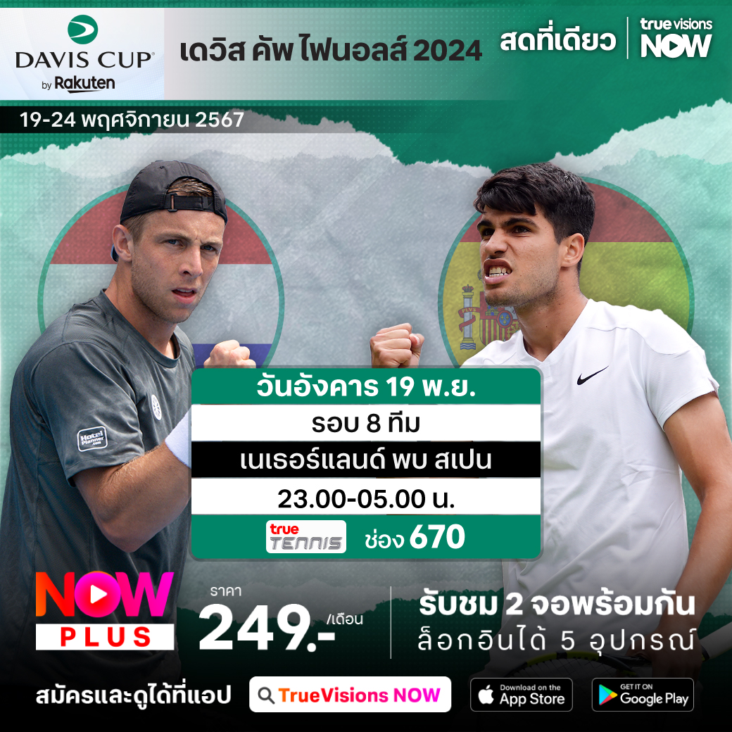 Netherland vs Spain 23.00 - 05.00 ทางช่อง True Tennis (670)