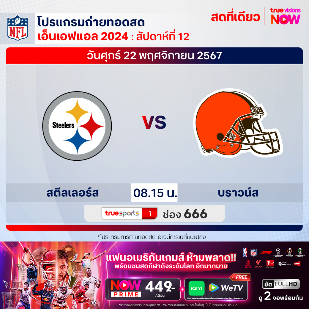 วันศุกร์ 22 พ.ย. Steelers Vs Browns เวลา 08.15 ทางช่อง TS 1 (666)