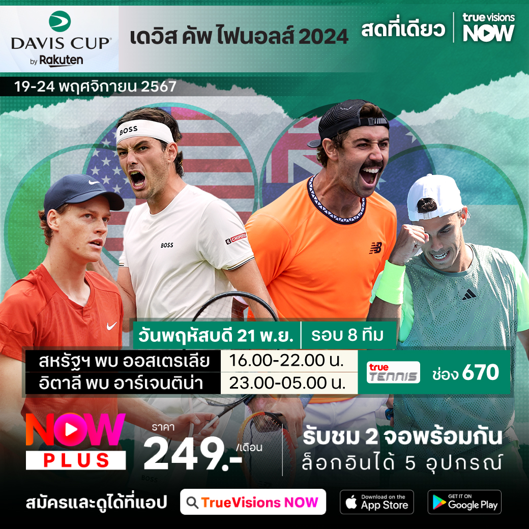 เทนนิสทีมชายชิงแชมป์โลก เดวิส คัพ 2024 รอบสุดท้าย มาถึงในรอบรองชนะเลิศแล้ว ร่วมลุ้นว่าชาติไหนจะคว้าแชมป์ไปครอง ชมสด ที่ ทรูวิชั่นส์