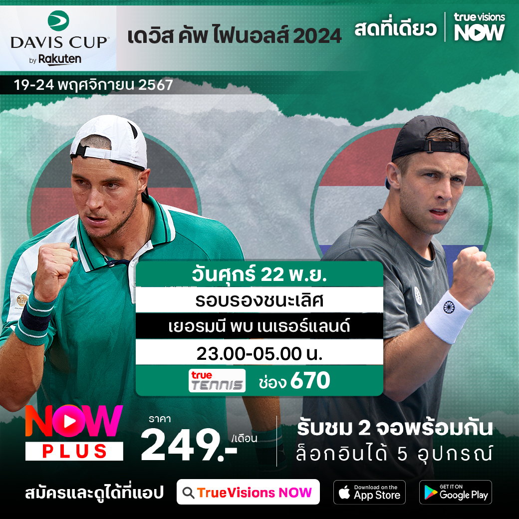 เทนนิส เดวิส คัพ ที่รวมทีมชั้นนำของโลกมาร่วมชิงชัยกัน เดินทางมาถึงในรอบรองชนะเลิศ เยอรมนี พบ เนเธอร์แลนด์ ร่วมลุ้นกันว่าทีมใดจะคว้าชัยชนะ เพื่อเข้าสู่รอบต่อไปและคว้าแชมป์ไปครอง ชมสด ที่ ทรูวิชั่นส์