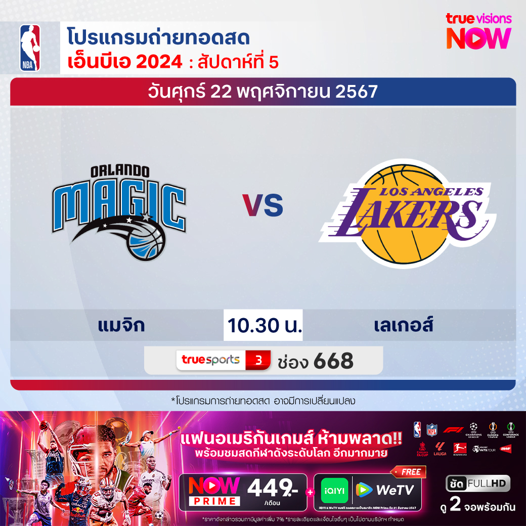 Magic vs Lakers เวลา 10.30 ทางช่อง TS 3 (668)