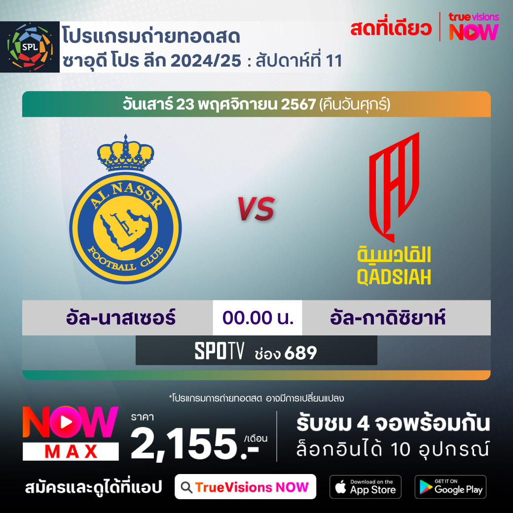 Al-Nassr vs Al-Qadisiyah เวลา 00.00-02.00 ทางช่อง SPOTV (689)