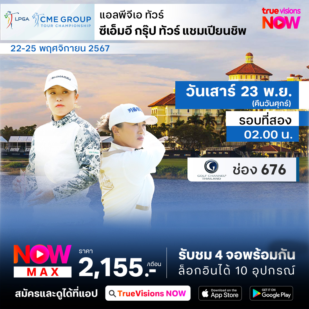 กอล์ฟหญิง แอลพีจีเอ ทัวร์ รายการที่ทุกคนรอคอยการมาถึงแล้ว กับความสนุกตื่นเต้นที่โปรกอล์ฟหัวแถวของทัวร์ ตบเท้าเข้าร่วมชิงชัยในรายการ ซีเอ็มอี กรุ๊ป ทัวร์ แชมเปี้ยนชิพ โทรฟี่แห่งศักด์ศรี เงินรางวัลรวมมหาศาล 11,000,000 เหรียญสหรัฐฯ และ โบนัส รวมถึงรางวัลเกียรติยศแห่งปีที่จะแจกกันในสัปดาห์นี้ ร่วมเชียร์โปรสาวไทยสู้กับโปรจากทั่วโลก ชมสด ครบทุกรอบ ที่ ทรูวิชั่นส์
