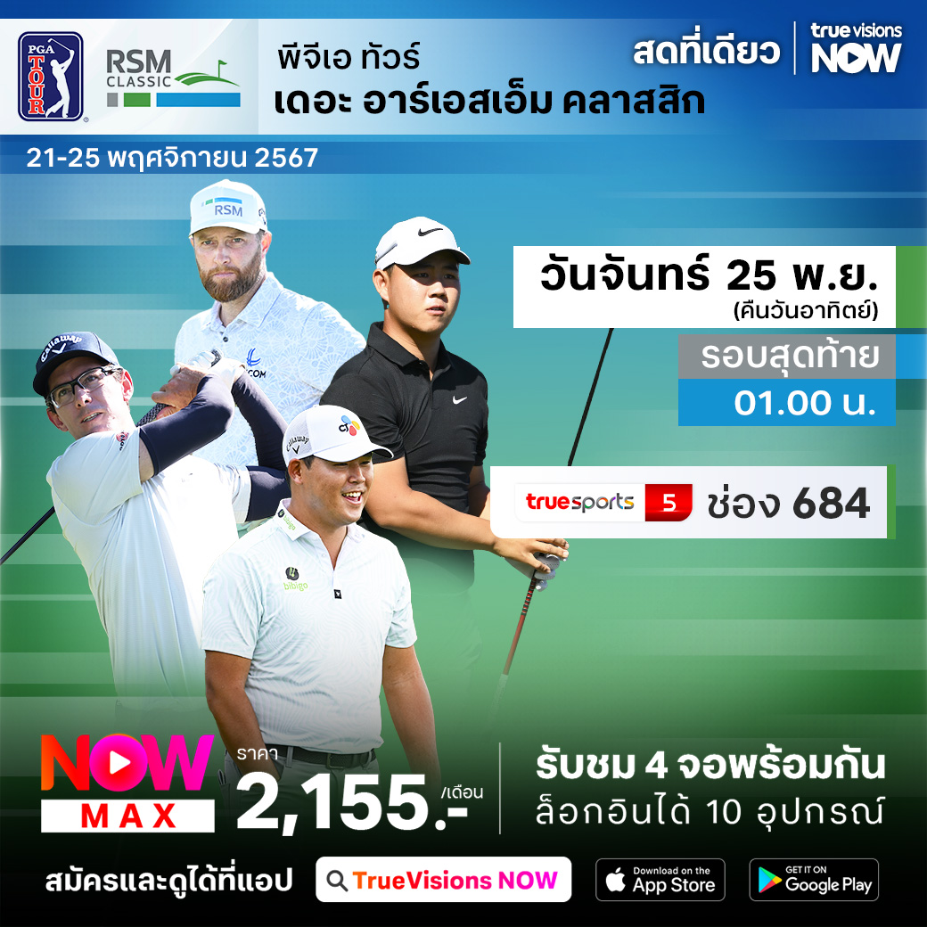 กอล์ฟ พีจีเอ ทัวร์ ฤดูกาล 2025 สัปดาห์นี้ พบกับรายการ เดอะ อาร์เอสเอ็ม คลาสสิก รายการสุดท้ายของ พีจีเอ ทัวร์ ซีรี่ส์ ที่สนามซี ไอส์แลนด์ กอล์ฟ คลับ (ซีไซด์ คอร์ส) ใน เซนต์ ซิมมอนส์ ไอส์แลนด์ รัฐจอร์เจีย ชิงเงินรางวัลรวม 7,600,000 เหรียญสหรัฐฯ ร่วมลุ้นกันว่าใครจะคว้าแชมป์ไปครอง ชมสด เอ็กซ์คลูซีฟ ที่เดียว ที่ ทรูวิชั่นส์