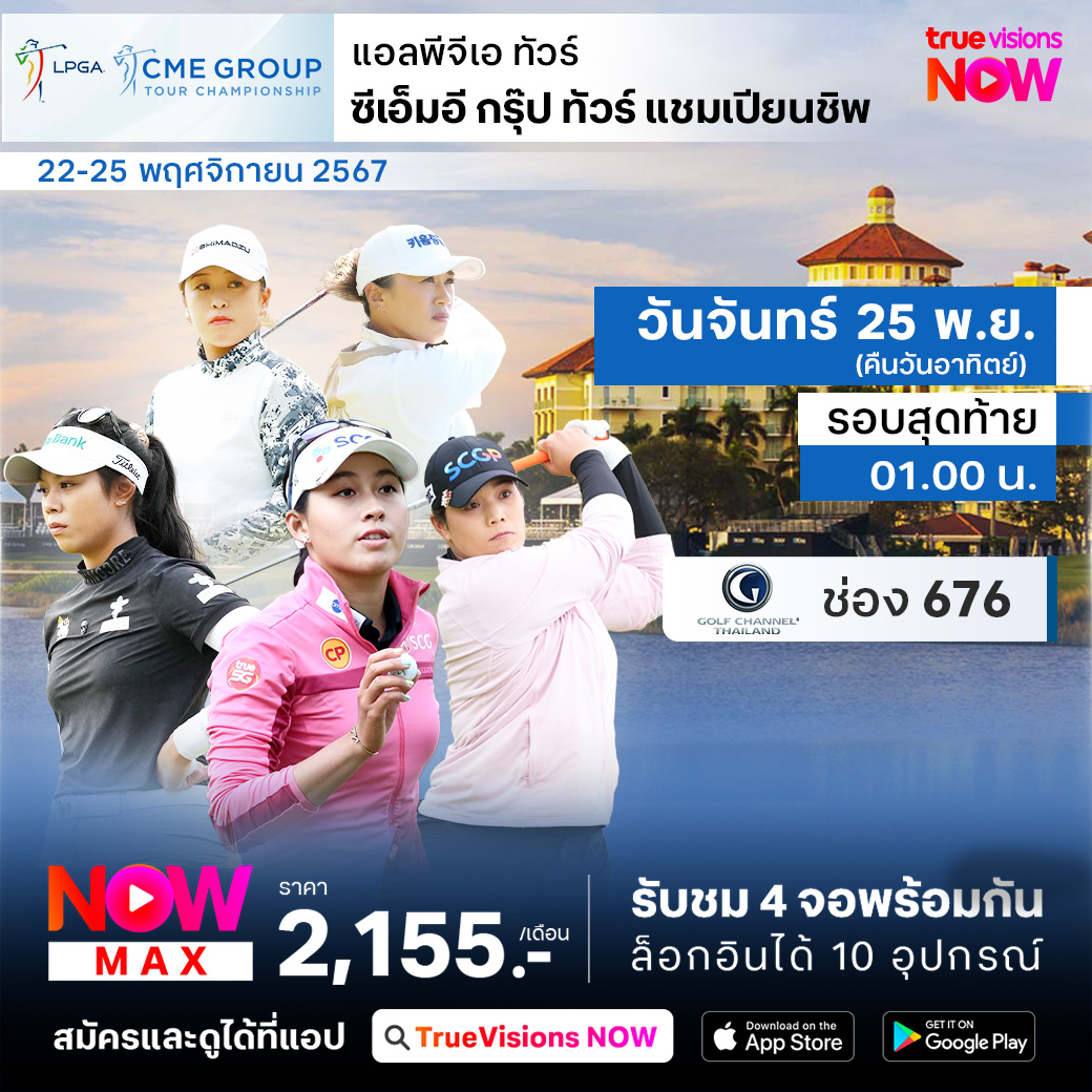 กอล์ฟหญิง แอลพีจีเอ ทัวร์ รายการที่ทุกคนรอคอยการมาถึงแล้ว กับความสนุกตื่นเต้นที่โปรกอล์ฟหัวแถวของทัวร์ ตบเท้าเข้าร่วมชิงชัยในรายการ ซีเอ็มอี กรุ๊ป ทัวร์ แชมเปี้ยนชิพ โทรฟี่แห่งศักด์ศรี เงินรางวัลรวมมหาศาล 11,000,000 เหรียญสหรัฐฯ และ โบนัส รวมถึงรางวัลเกียรติยศแห่งปีที่จะแจกกันในสัปดาห์นี้ ร่วมเชียร์โปรสาวไทยสู้กับโปรจากทั่วโลก ชมสด ครบทุกรอบ ที่ ทรูวิชั่นส์