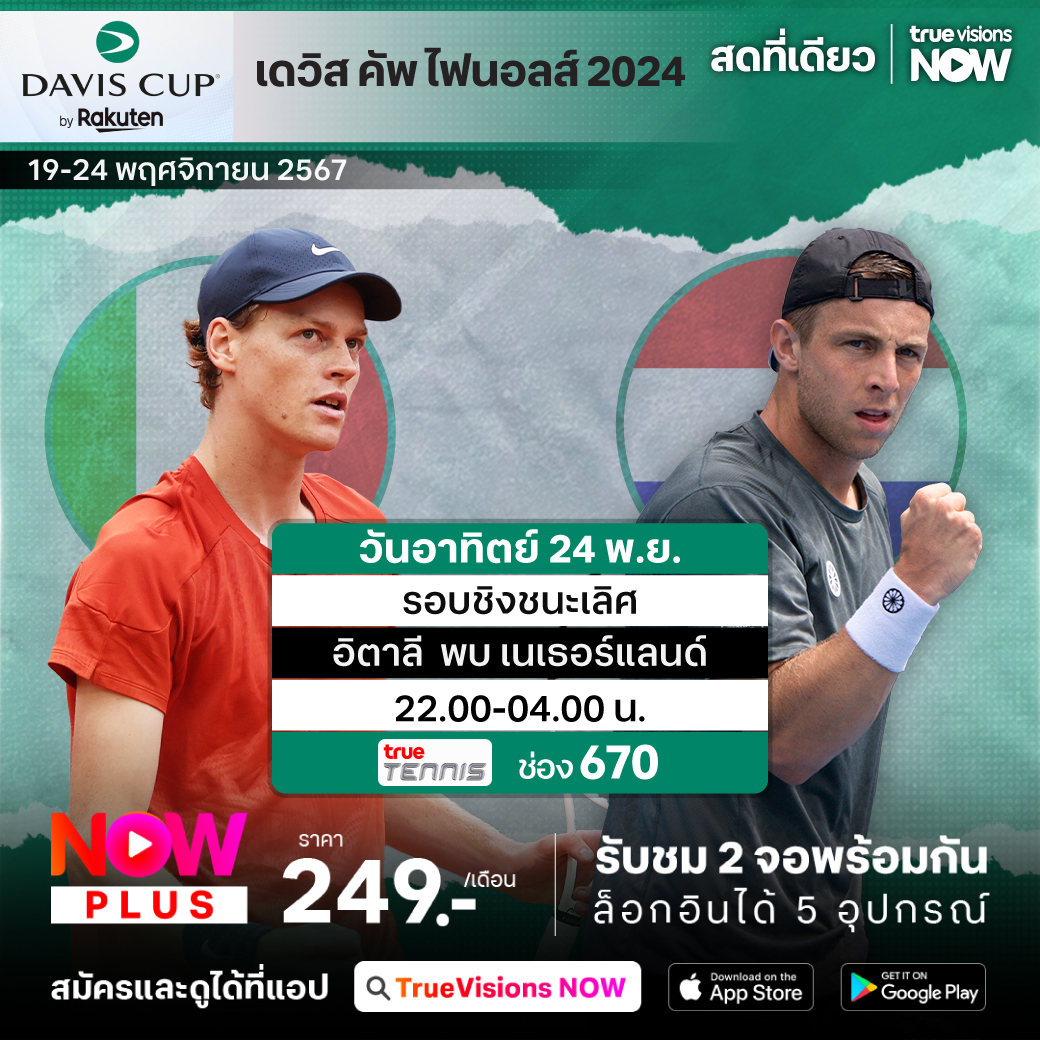 เทนนิส เดวิส คัพ ที่รวมทีมชั้นนำของโลกมาร่วมชิงชัยกัน เดินทางมาถึงในรอบชิงชนะเลิศ ร่วมลุ้นกันว่าทีมใดจะคว้าชัยชนะ และคว้าแชมป์ไปครอง ชมสด ที่ ทรูวิชั่นส์