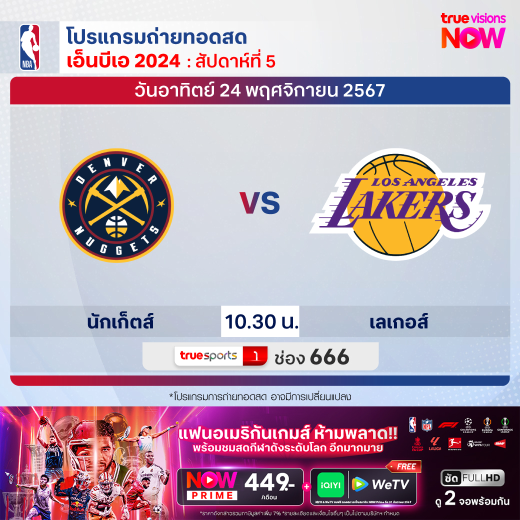 Nuggets Vs Lakers เวลา 10.30 ทางช่อง TS 1 (666)