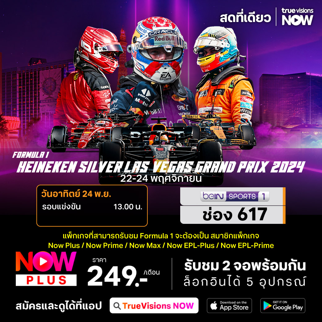 ศึก ฟอร์มูล่า วัน เวิลด์ แชมเปี้ยนชิพ รายการ ลาส เวกัส กรังด์ปรีซ์ จับตาการขับเคี่ยวกันระหว่างแชมป์โลกจากเร้ดบูลส์ แม็กซ์ เวอร์สแท็ปเพ่น และ แลนโด นอร์ริส ผู้ท้าชิงจากทีมแม็คลาเรน ร่วมด้วย ชาร์ลส์ เลอ แคลร์ จากเฟอร์รารี่ ที่พร้อมเสียบตำแหน่งแชมป์ ชมสด เอ็กซ์คลูซีฟ ที่เดียวที่ ทรูวิชั่นส์