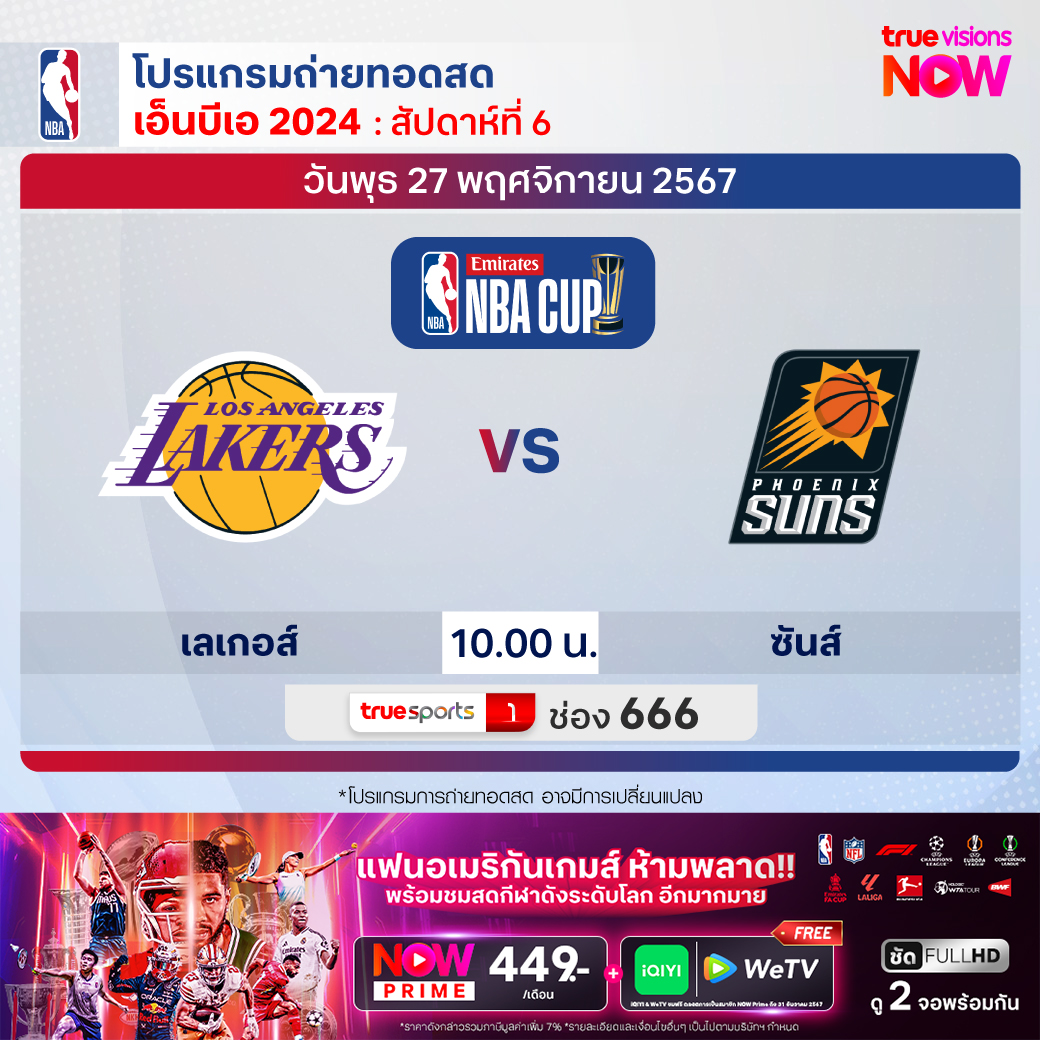 Lakers Vs Suns เวลา 10.00 ทางช่อง TS 1 (666)