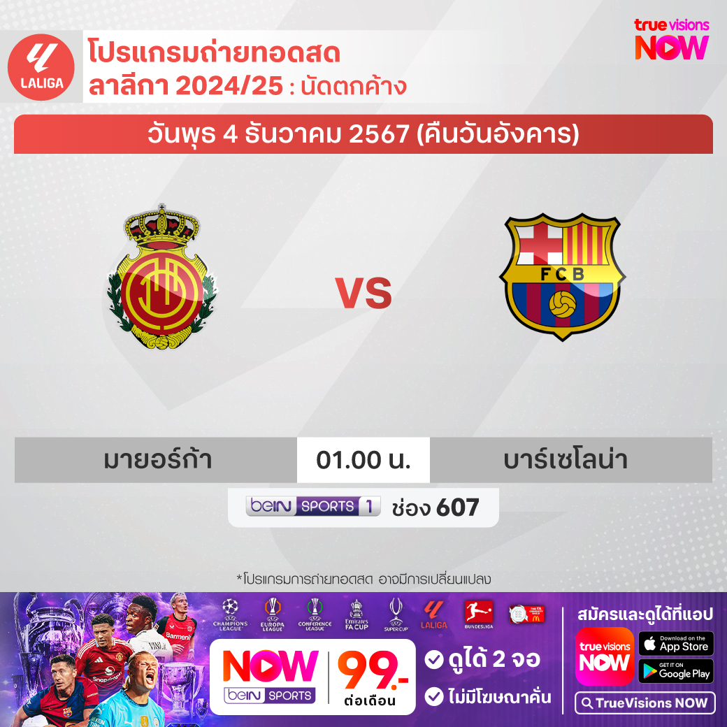 Mallorca vs Barcelona เวลา 01.00-03.00 ทางช่อง beIN 1 (607)