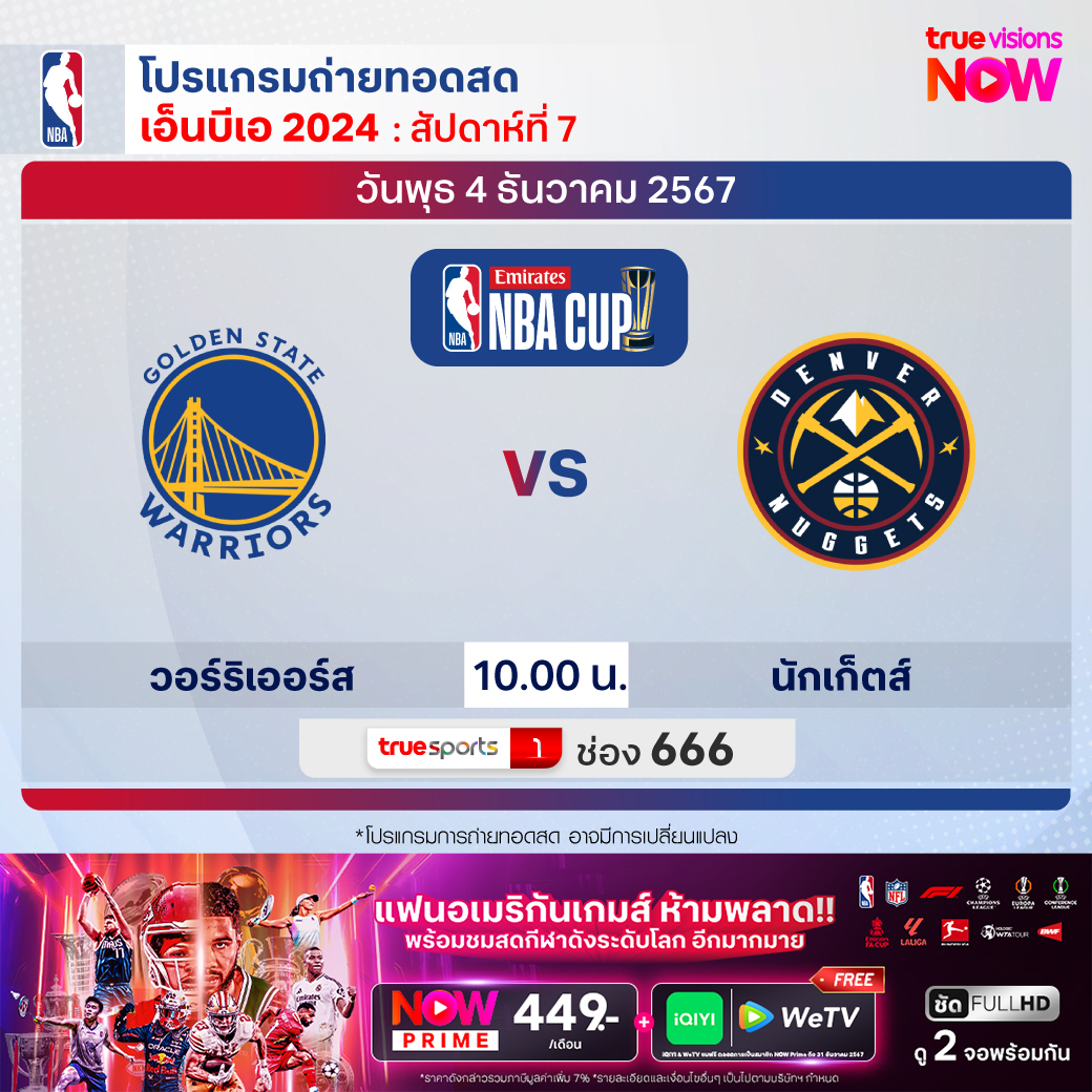 Warriors Vs Nuggets เวลา 10.00 ทางช่อง TS 1 (666)