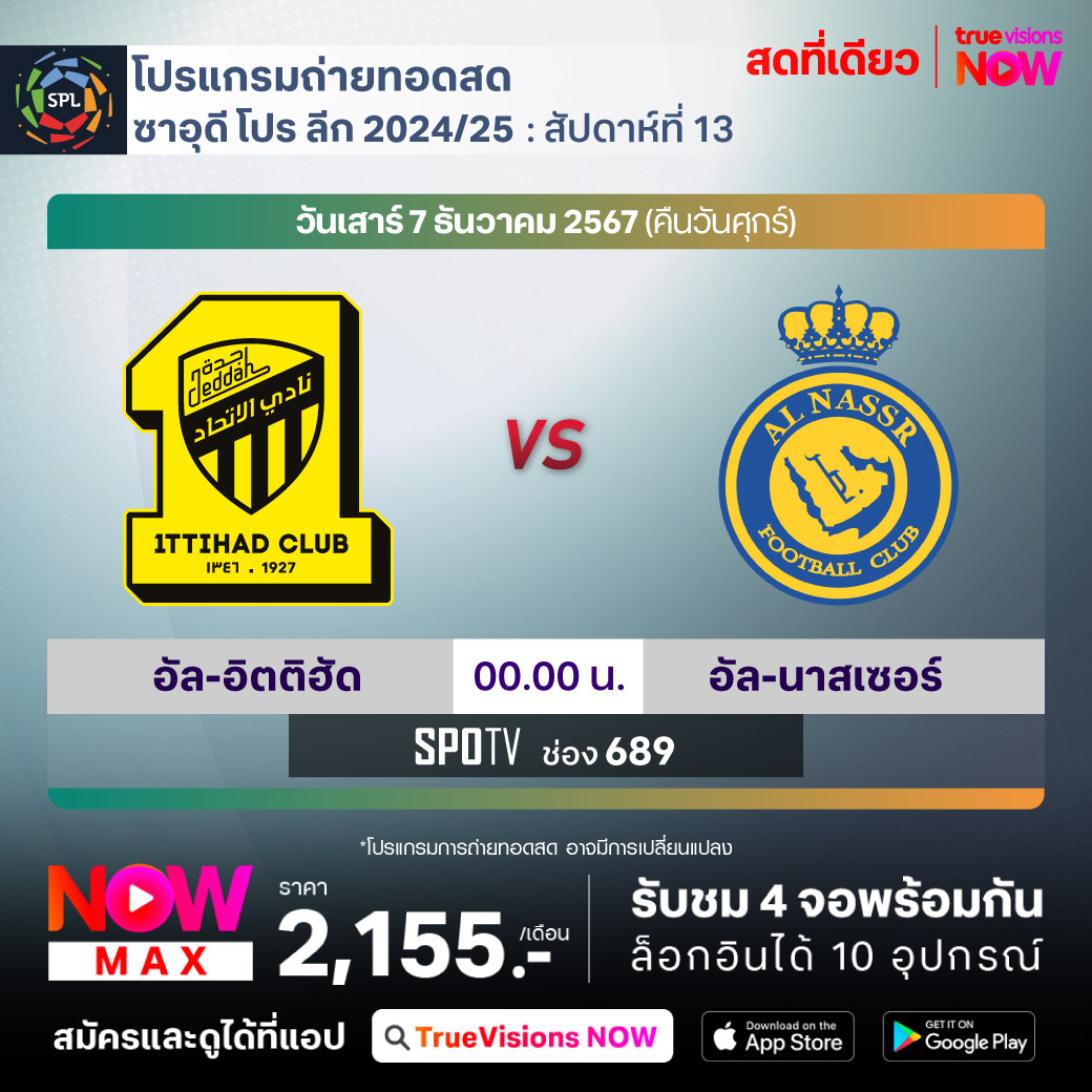 Al-Ittihad vs Al-Nassr เวลา 00.00-02.00 ทางช่อง SPOTV (689)