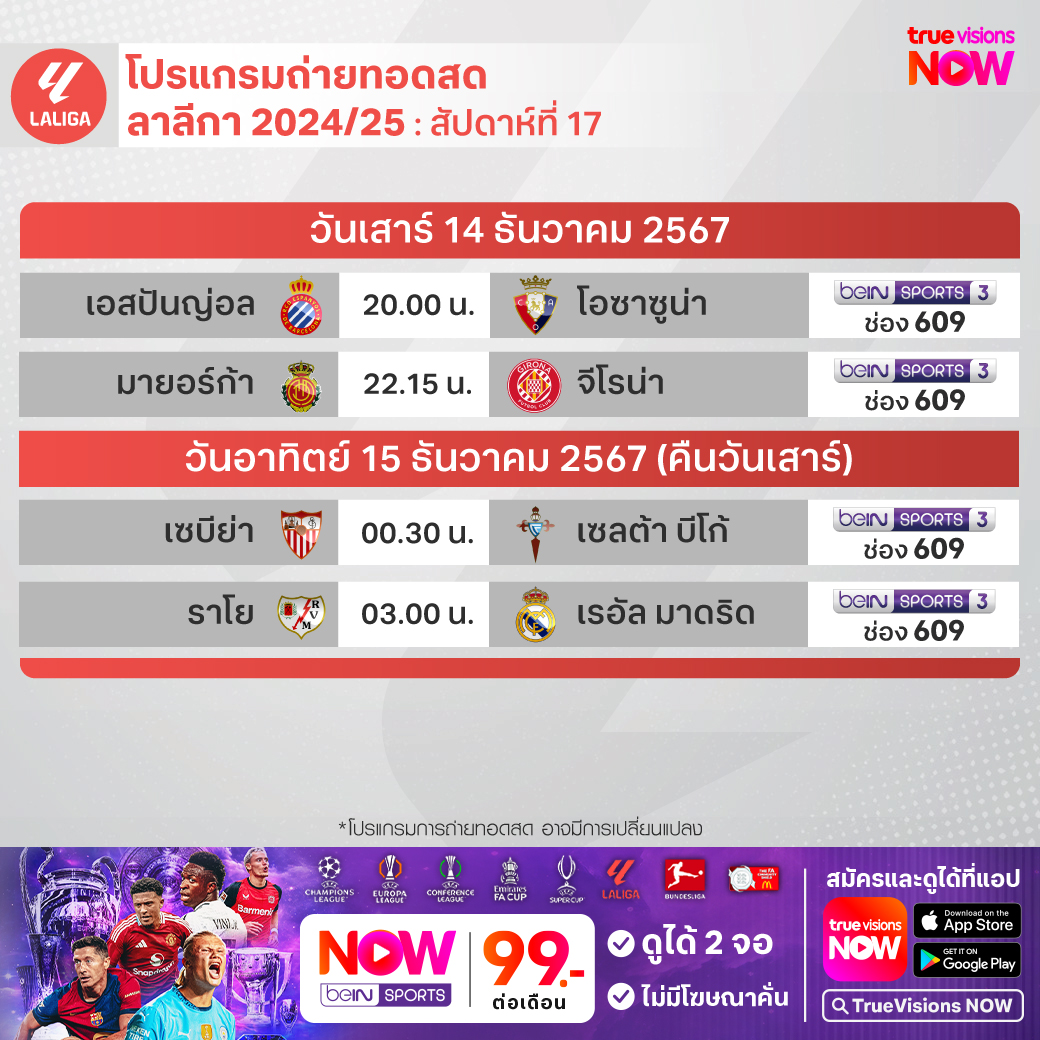 Mallorca vs Girona เวลา 22.15-00.15 ทางช่อง beIN 3 (609)