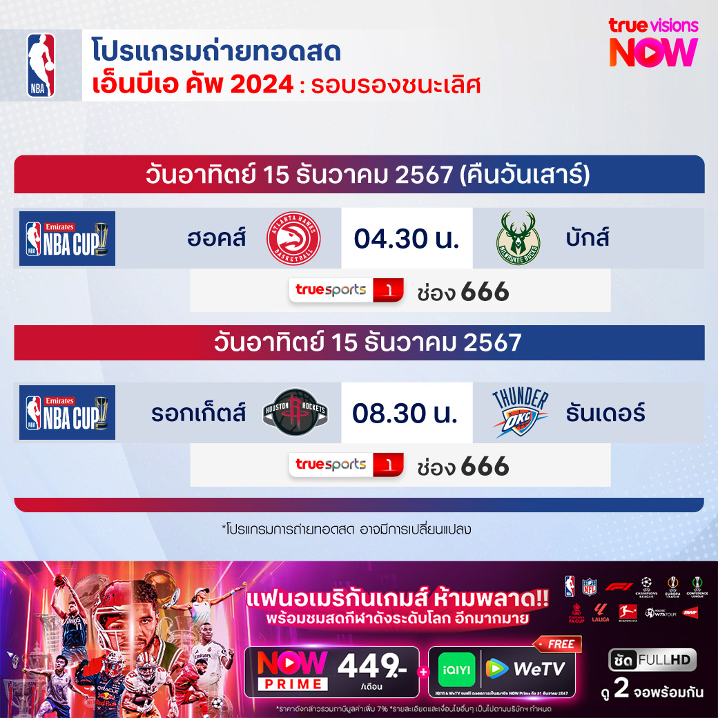 วันอาทิตย์ 15 ธ.ค. Rockets Vs Thunder เวลา 08.30 ทางช่อง TS 1 (666)