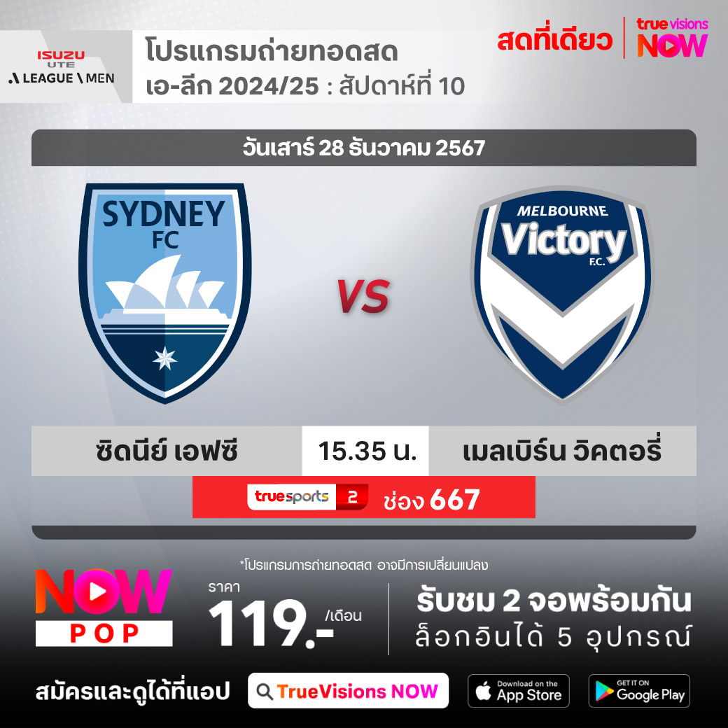 Sydney FC vs Melbourne Victory เวลา 15.35-17.35 ทางช่อง TS 2 (667)