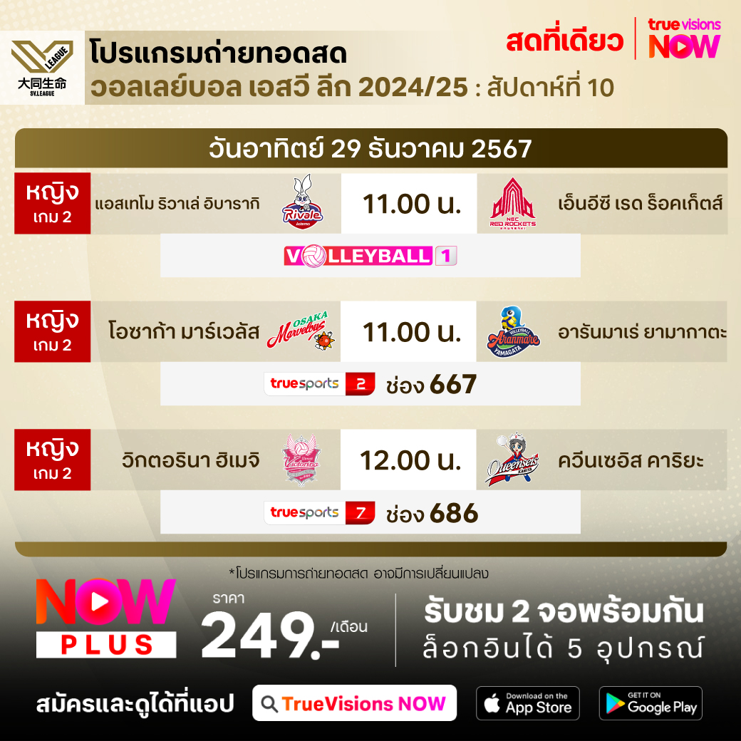 แอสเทโม ริวาเล่ อิบารากิ พบ เอ็นอีซี เรด ร็อคเก็ตส์ เวลา 11.00 - 13.30 ทางช่อง Volleyball 1