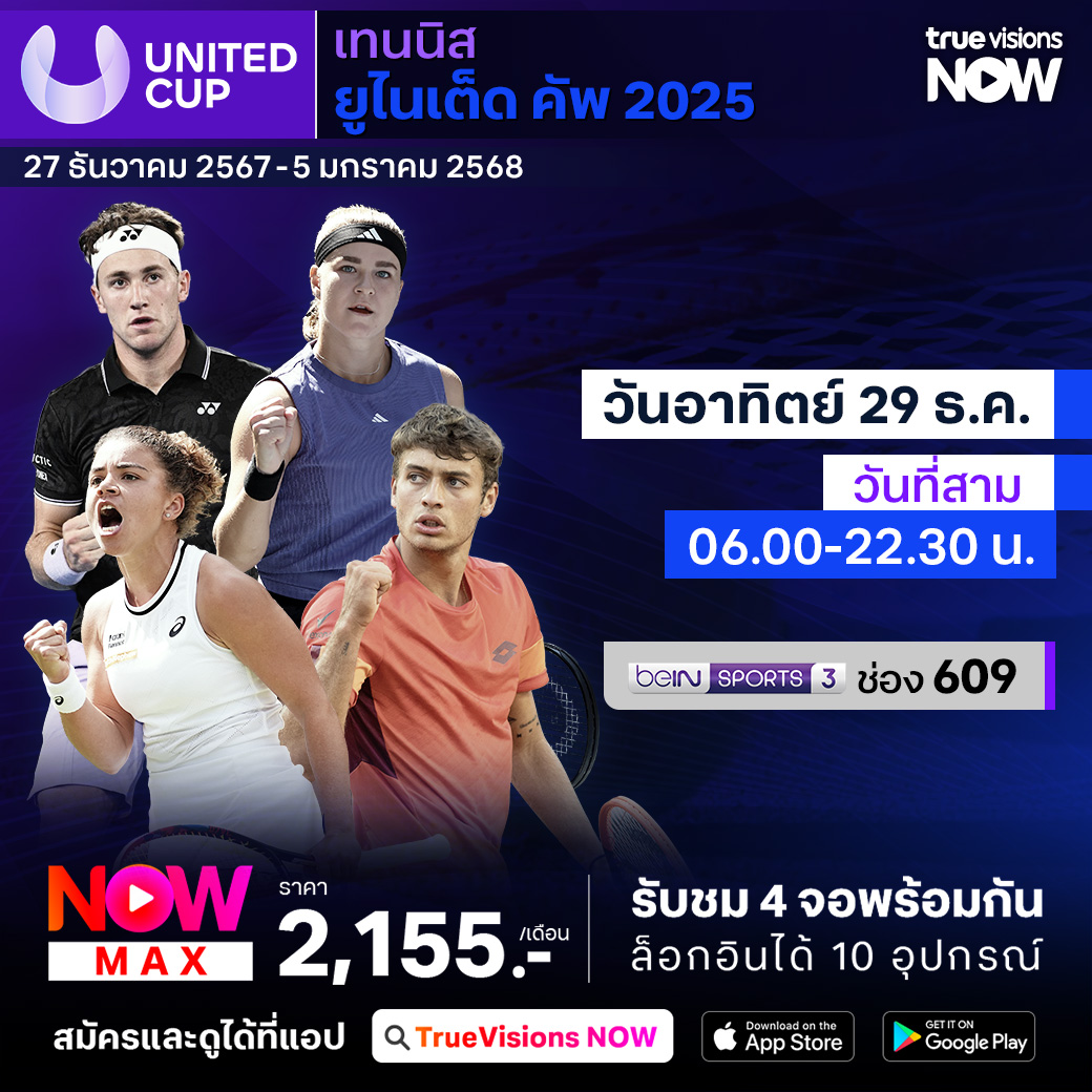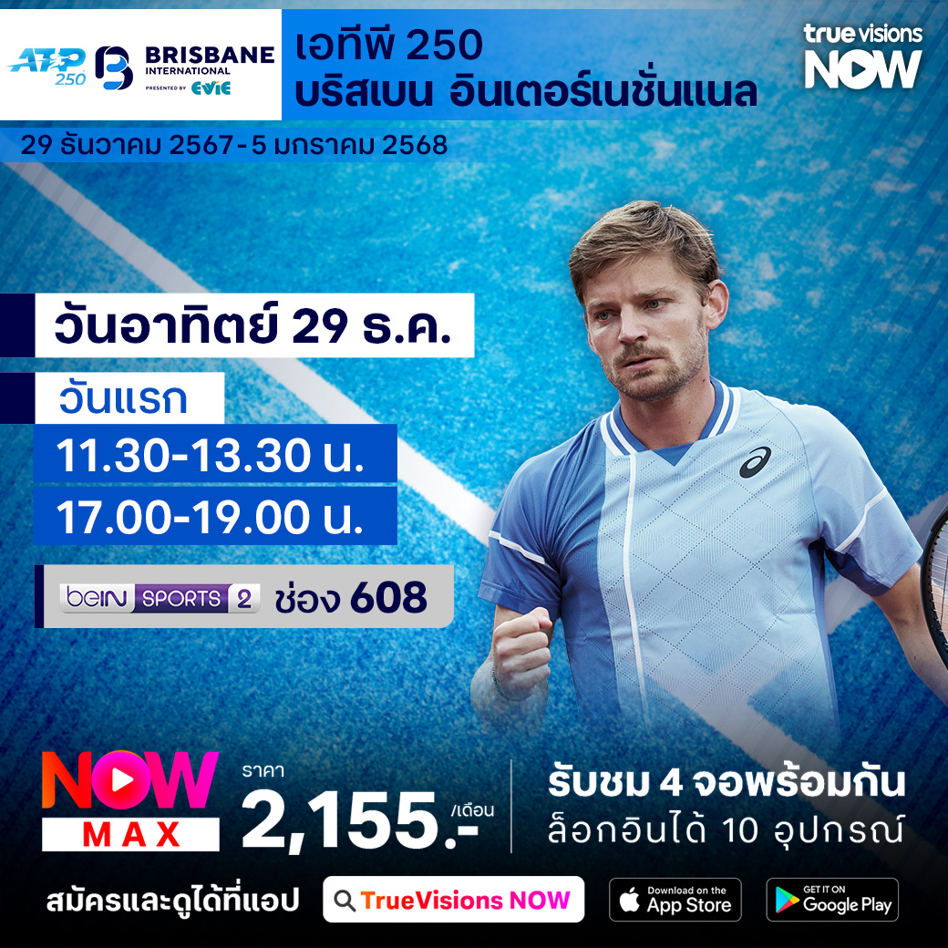 เทนนิส เอทีพี ทัวร์ รายการแรกของปี 2025 บริสเบน อินเตอร์เนชั่นแนล ที่เมืองบริสเบน ประเทศออสเตรเลีย เป็นเทนนิสรายการสำคัญเพื่อให้นักกีฬาได้เตรียมตัวก่อนเข้าสู่แกรนด์สแลมแรกของปี ออสเตรเลียน โอเพ่น ร่วมลุ้นกันว่าใครจะคว้าแชมป์รายการนี้ไปครองได้สำเร็จ ชมสด ครบทุกรอบ ที่ ทรูวิชั่นส์