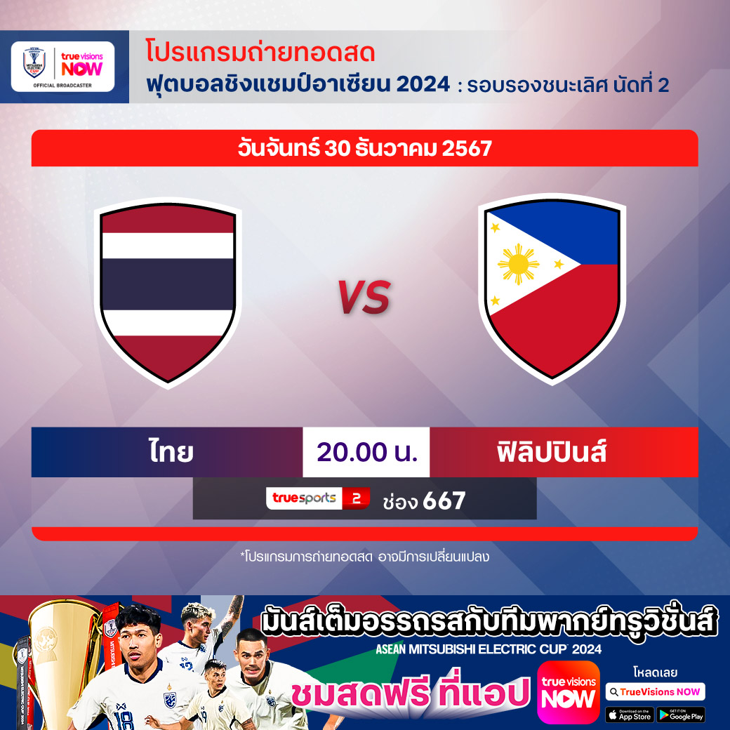 THAILAND vs PHILIPPINES เวลา 20.00-22.00 ทางช่อง TS 2 (667)